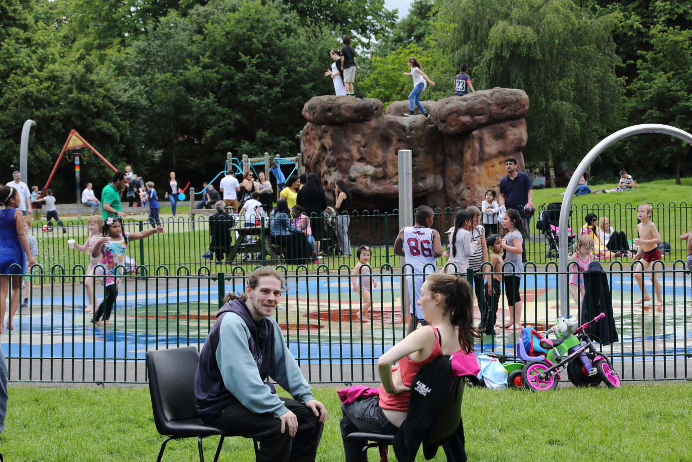 Arboretum Park in the heart of the Normanton district of Derby was host to a small Music Festival ( courtesy of Derby City Council) and a Family Fun Day ( courtesy of Pear Tree Baptist Church) . It is famed as being one of the first urban recreational parks in England. This area of Derby has some negative notoriety and the park is home to drunks and drug dealers on occasions – but during the day is a pleasant place for people to walk, relax and get away from the claustrophobia of the terraced streets.