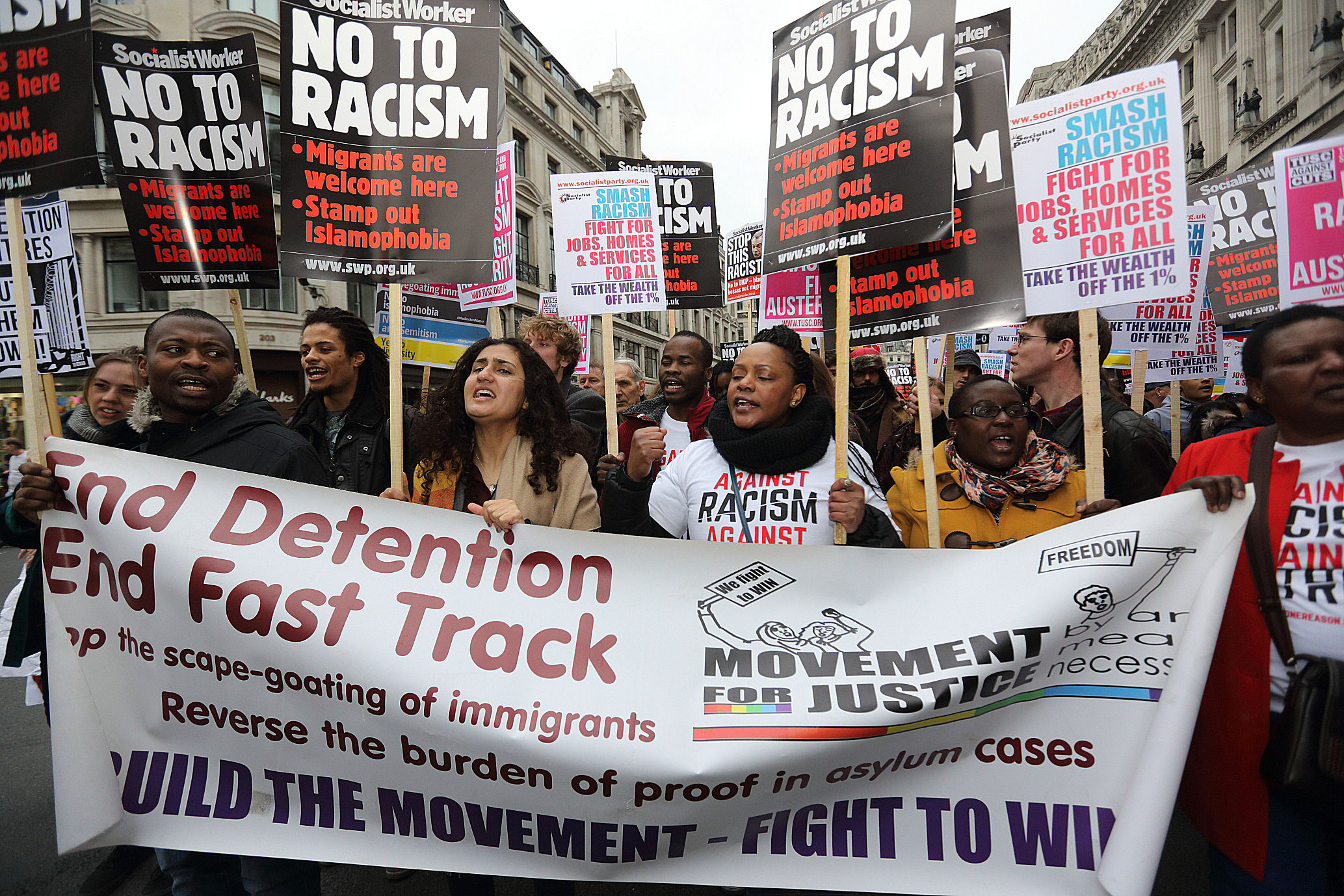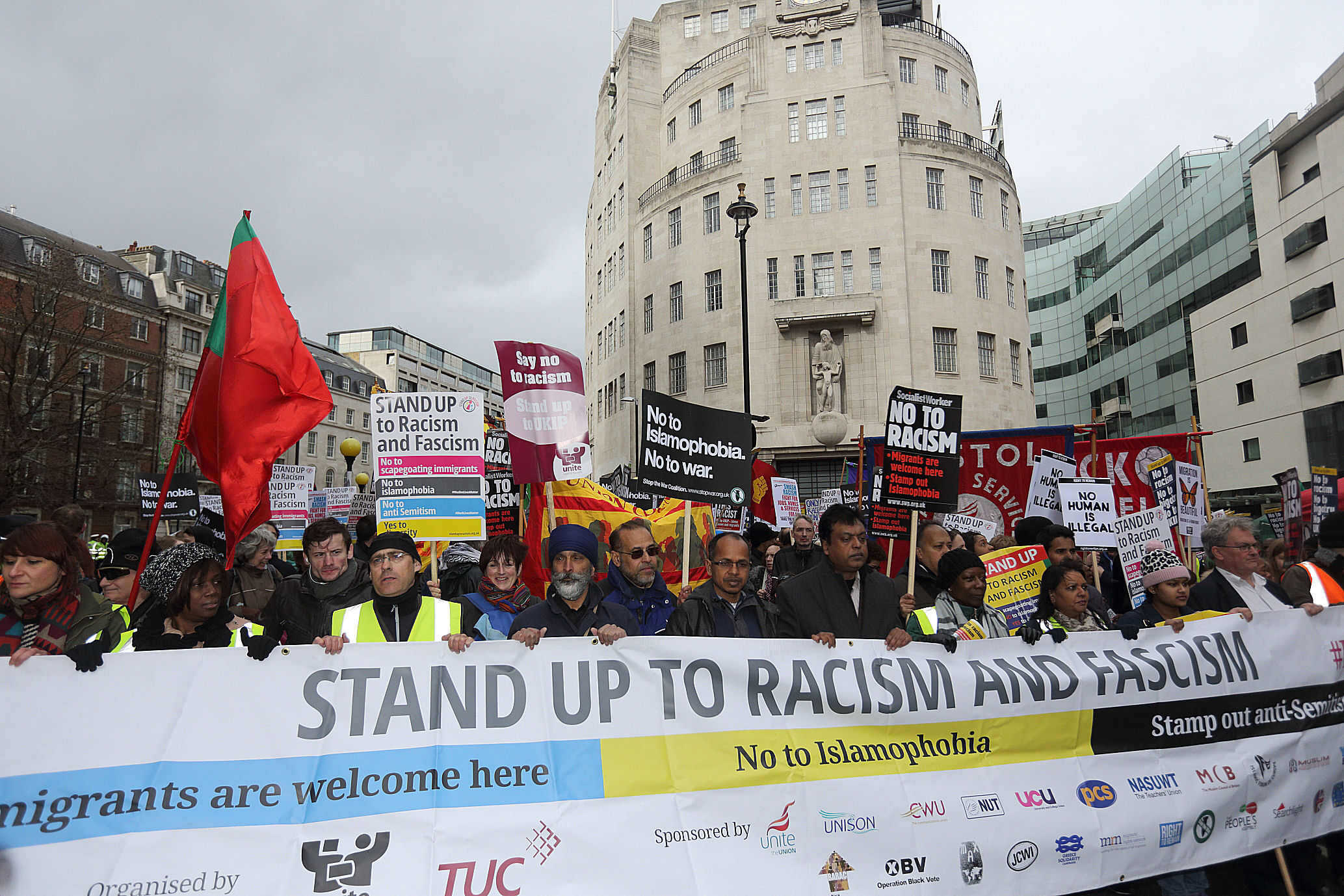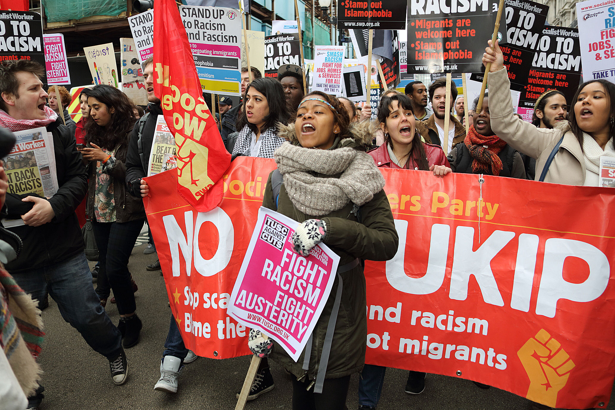 >The march through London yesterday was a protest against all forms of racism and bigotry in our society as well as the Government policies which are particularly disadvantageous to minorities and vulnerable groups. As we enter the lead up the General Election the concern is that the populist views promoted by UKIP will become part of the armoury of Conservative and Labour rhetoric to secure those much needed votes. The plea from many of the speakers was ” You cannot out-UKIP, UKIP”
