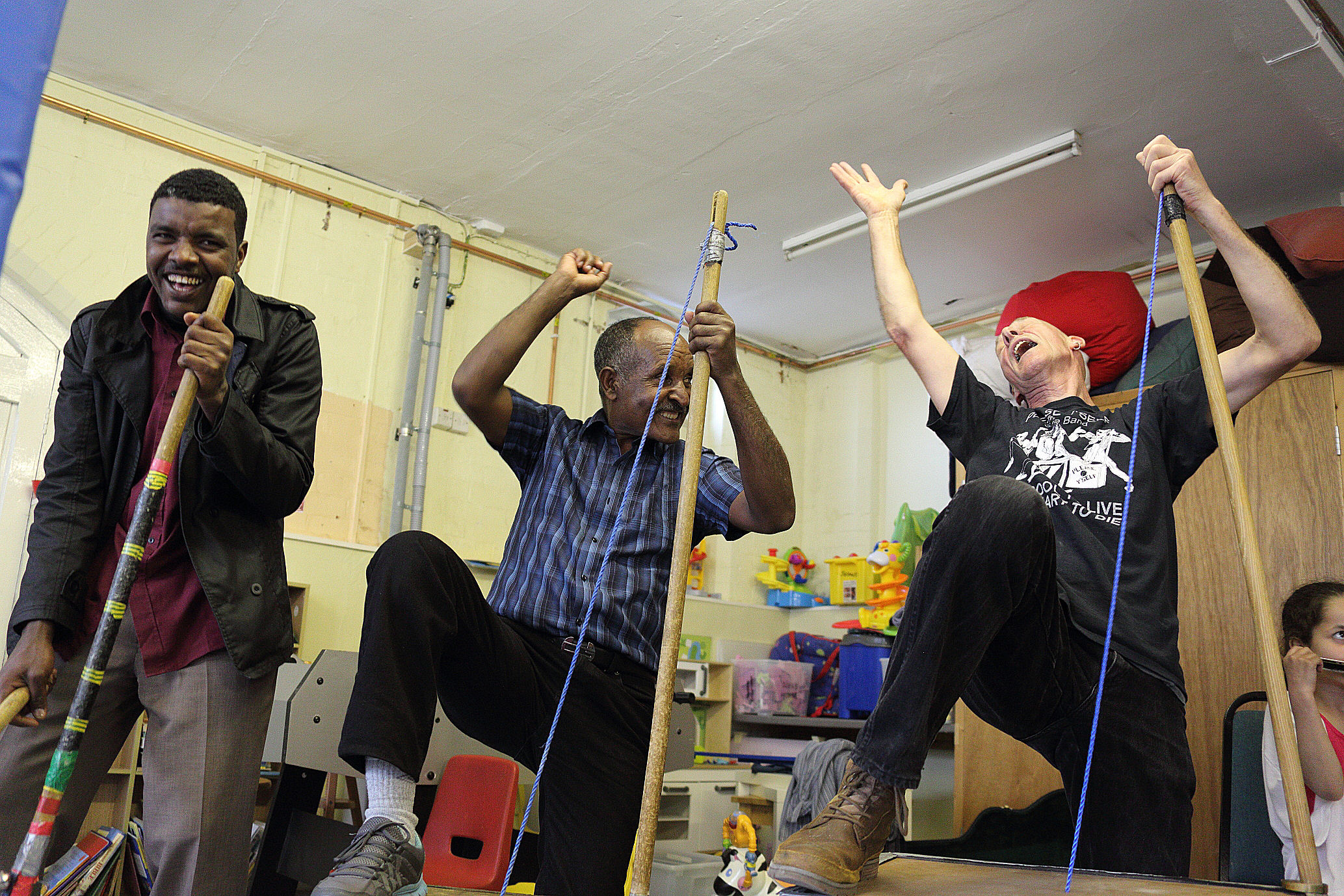 The band “Please Y’self” played a number of skiffle songs and did a great job of getting everyone involved. Despite little common vocabulary for many, the beat and rhythm of the music, created a togetherness which made them really enjoy the present, and, momentarily, forget the problems of the past, and anxieties about their future.