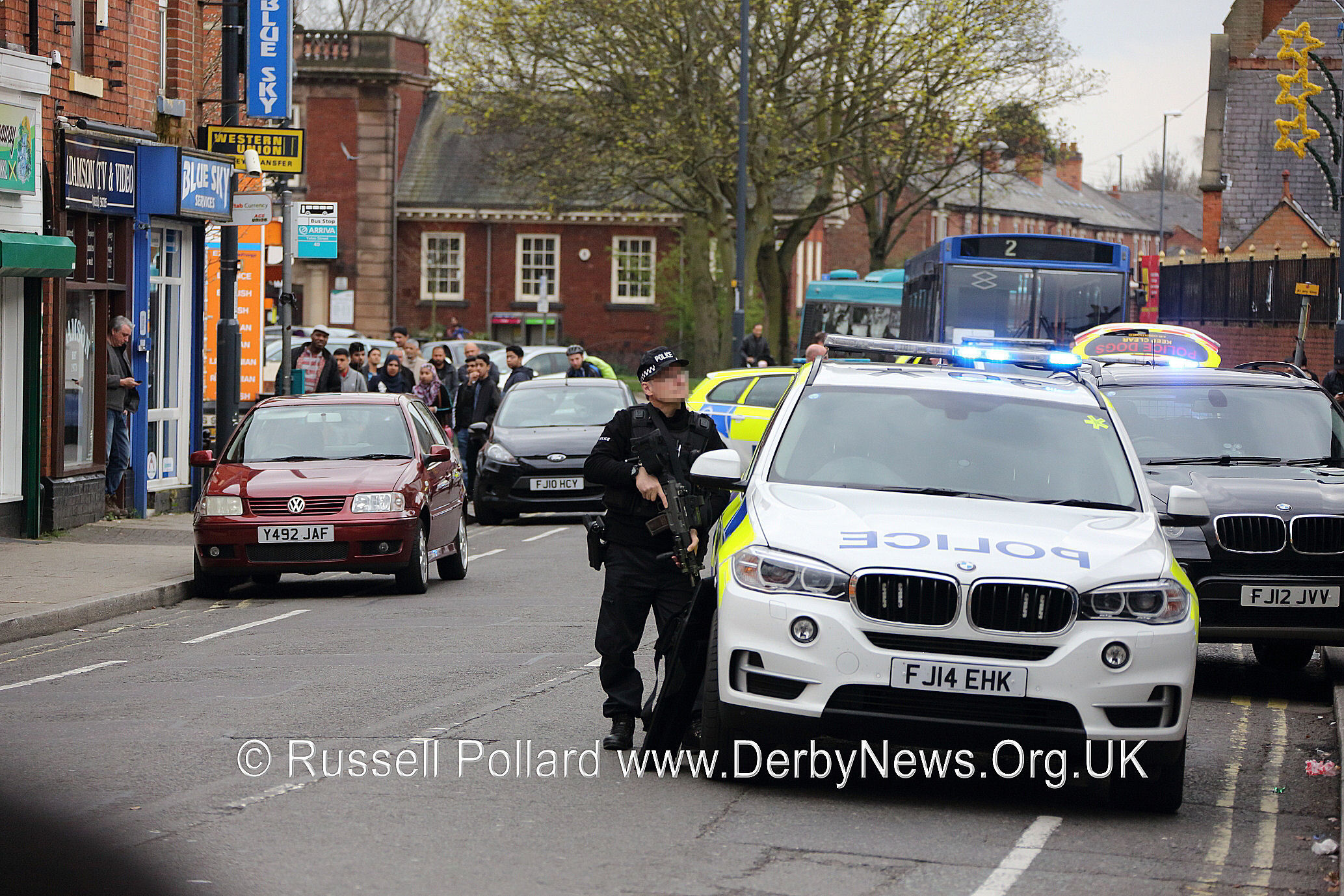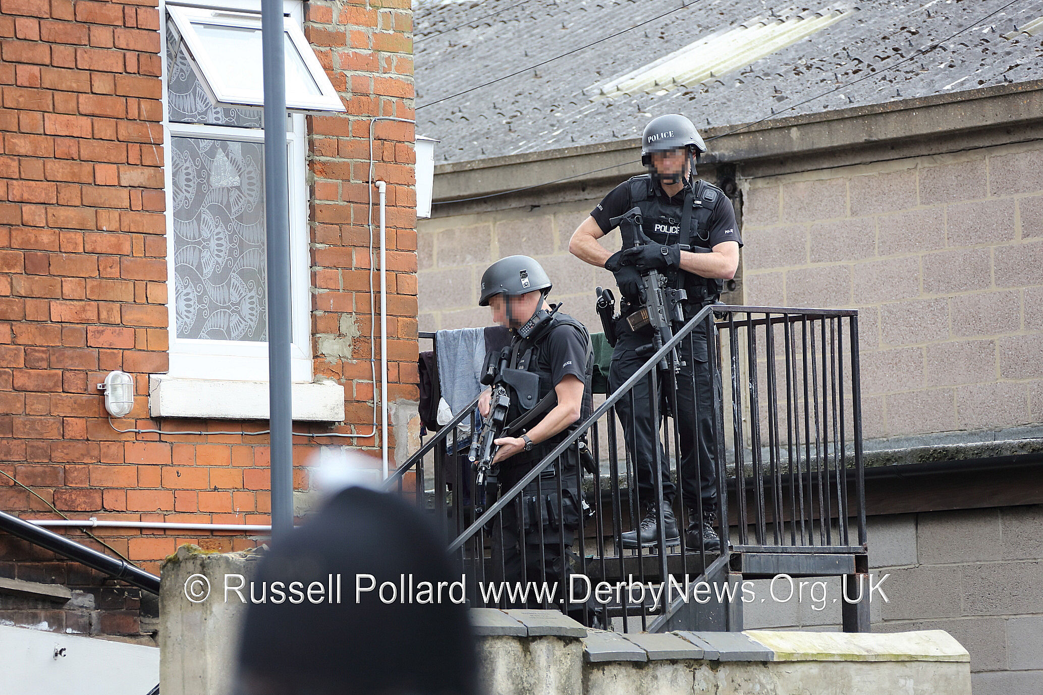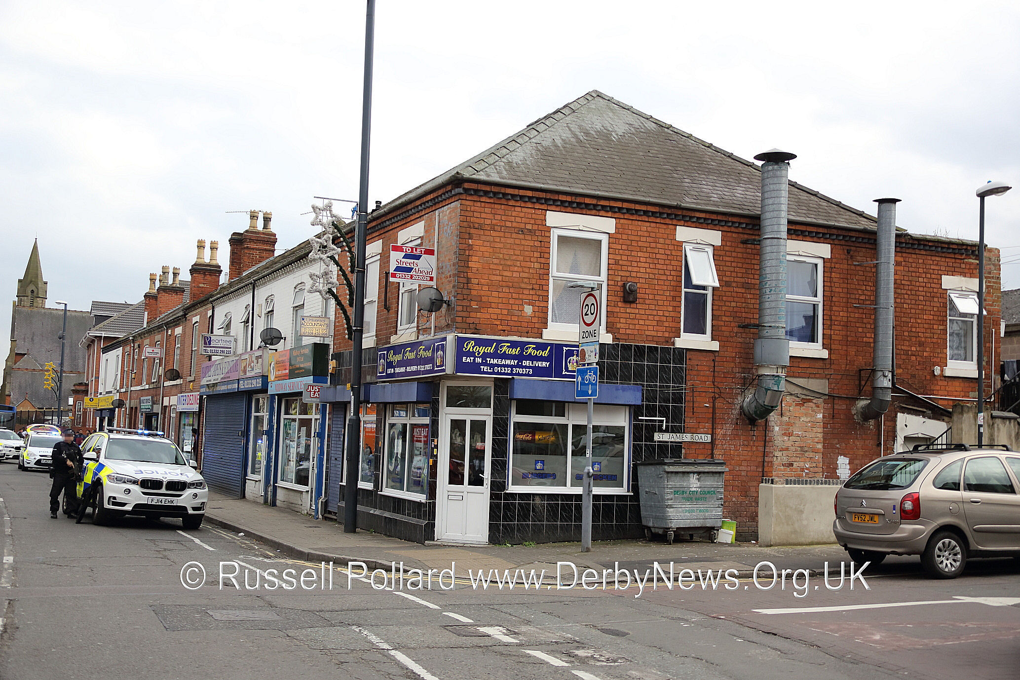 Just before 5pm , today, (13th April), the Police surrounded a property on the corner of Pear Tree Road, and St James Street. Fully armed police were present both on the street, and in the upstairs part of the building. The entire road was blocked off, with the Police progressively pushing back the public who were waiting with anticipation for something to happen. At the time the Police were not releasing any information as to the reason for their presence. Occasionally one could hear shouting from the Police who were inside the property.