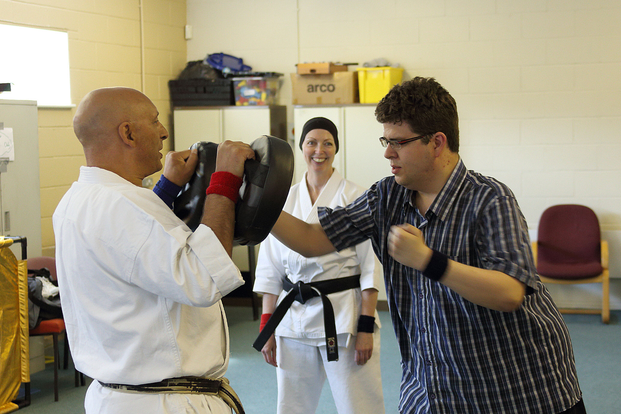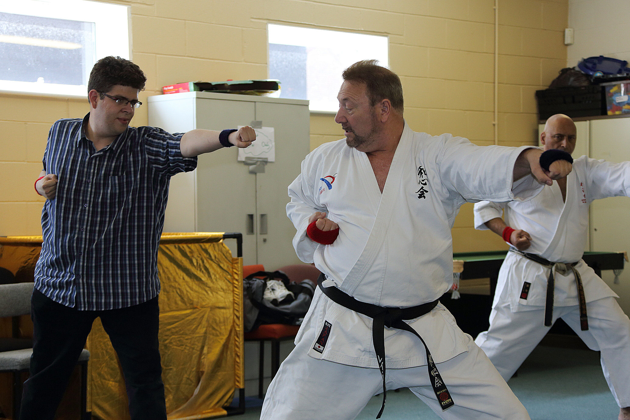Last week Ray Sweeney of the national Disability Karate Federation and John Johnston of the Sunny Hill and Normanton Karate clubs launched a programme of classes at the St. James Centre in Normanton to encourage disabled people in the area to benefit from this discipline.