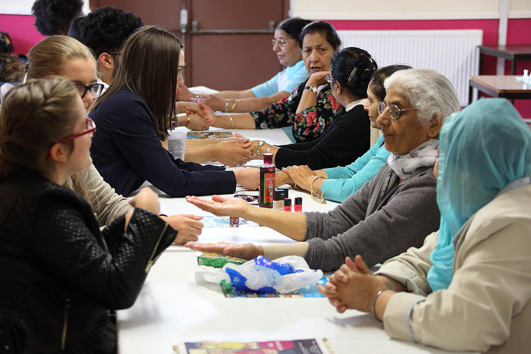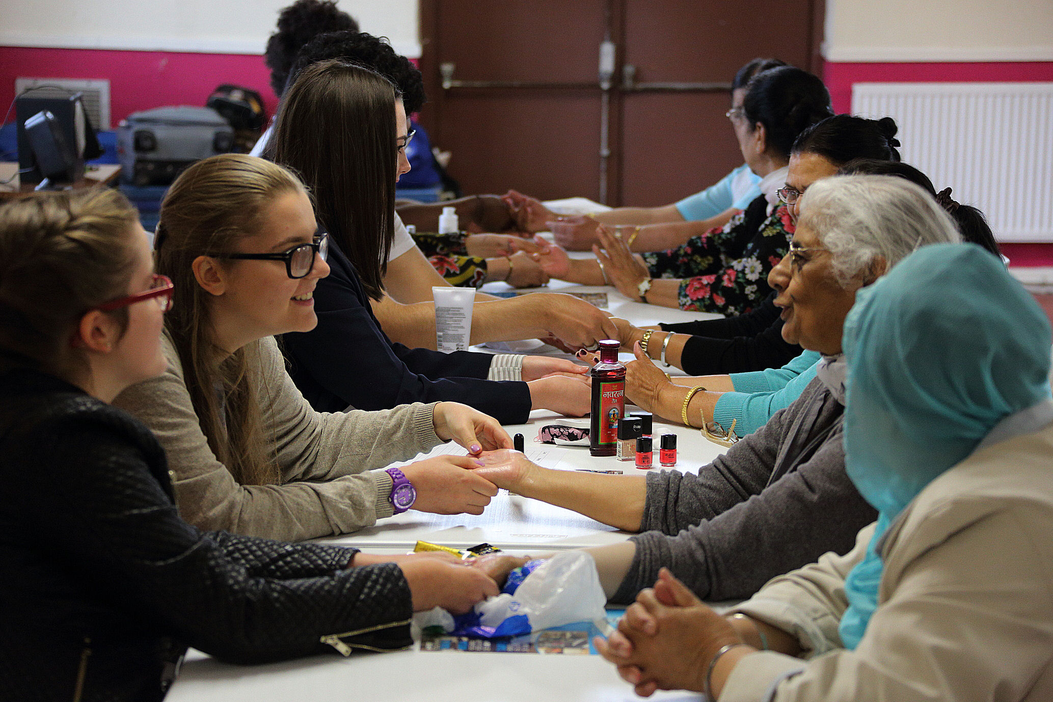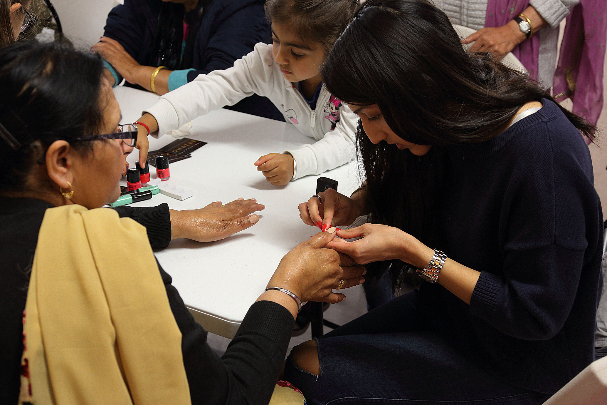 After lunch the members enjoyed a combination of hand massage, nail painting, and henna mehndi ( hand painting) ..as well as a chat with younger members of the community who they may not have had the chance to meet before.