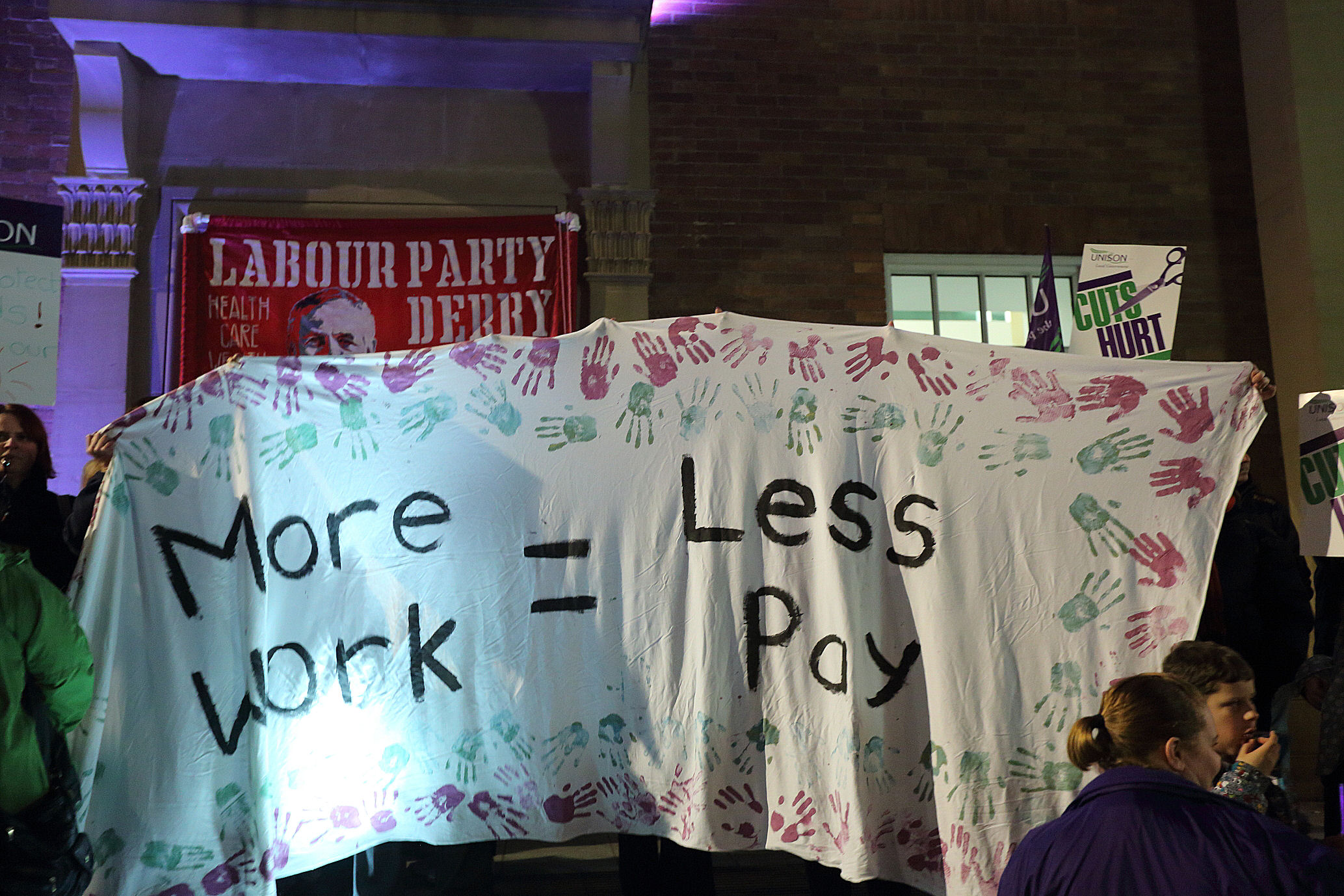 Several hundred people attended, and it was well-supported by the passing traffic “honking their horns”. The representatives from UNISON explained that this case would be taken up at National level, and that there was a view that a legal challenge could be made. Additionally, they would be reviewing the options for strike action.