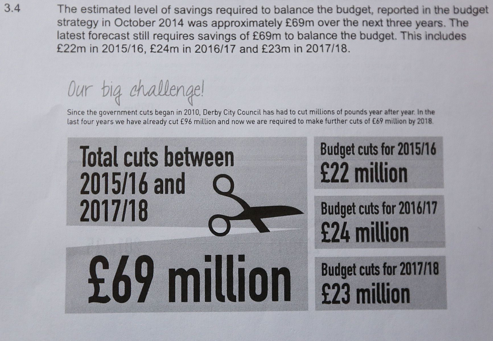 In October 2014 the Council reported that £69m cuts needed to be made in the 3 years following 2014/15.
