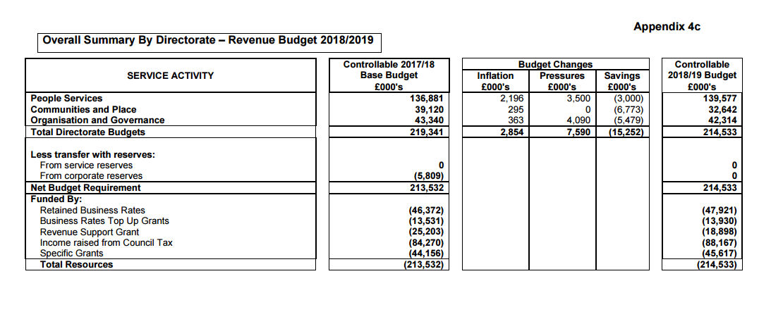 In 3 years time, the period over which the £45m refers to, in 2018/19 the Council plans to receive £215m in funding (£88m from Council Tax)