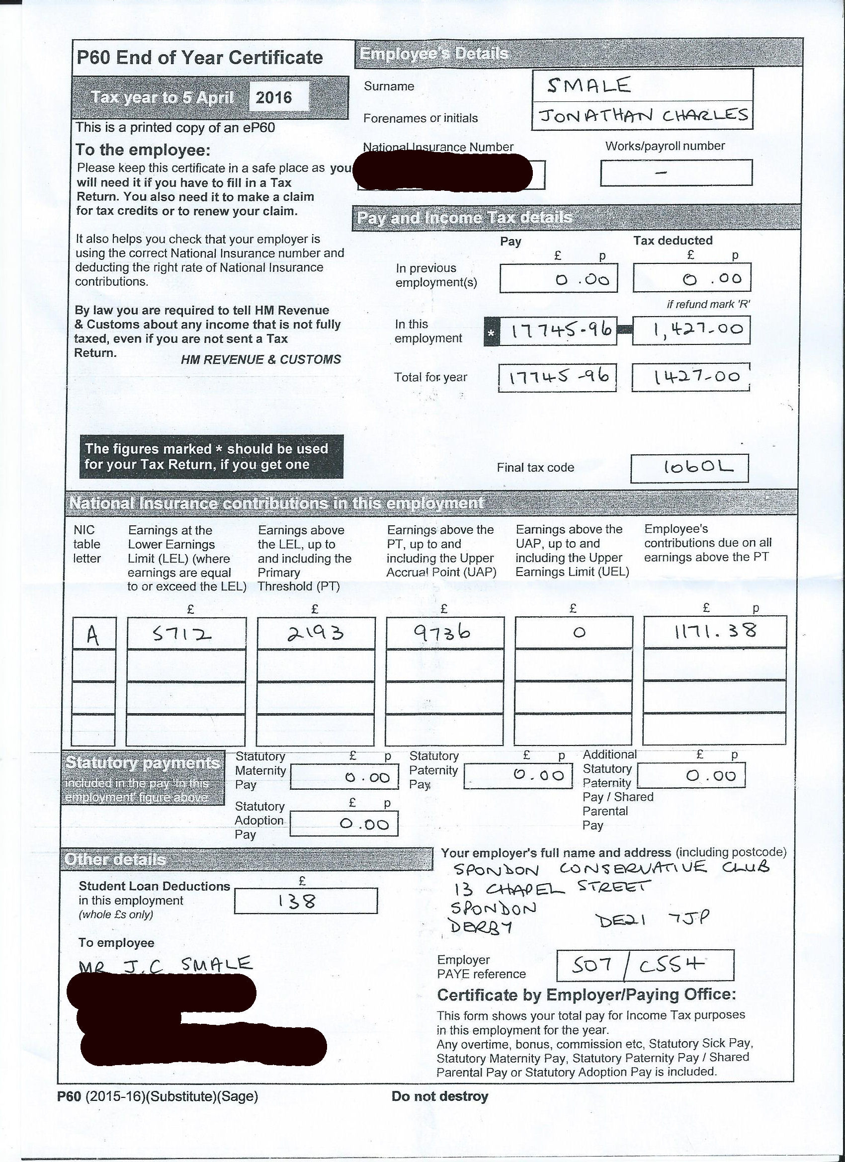 Jonathan chose to publish his most recent tax return / P60.