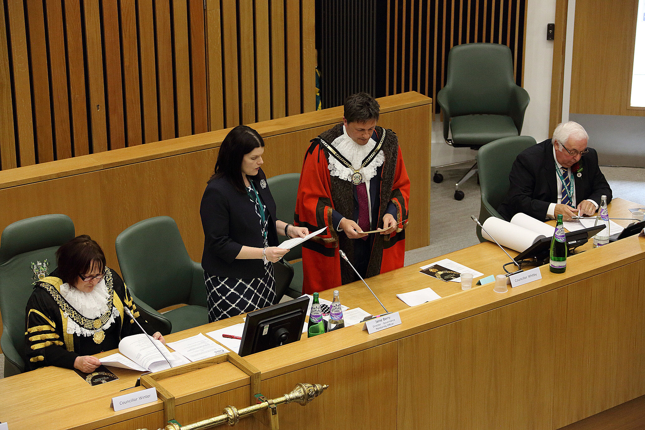 The new Mayor flanked by Paul Robinson (Chief Exec) and Janie Berry ( Legal/Monitoring Officer) – making sure she knows her place