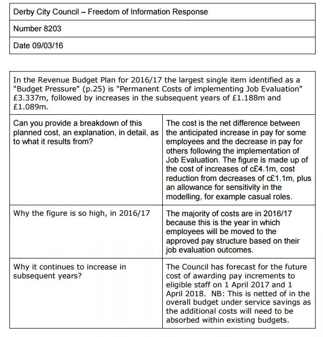 As mentioned earlier, the problem is that the Council has check-mated itself, by implementing £4m pay increases (average 4%), elsewhere.( contained in the 2016/17 Budget). Reported previously here ( see FOI below)