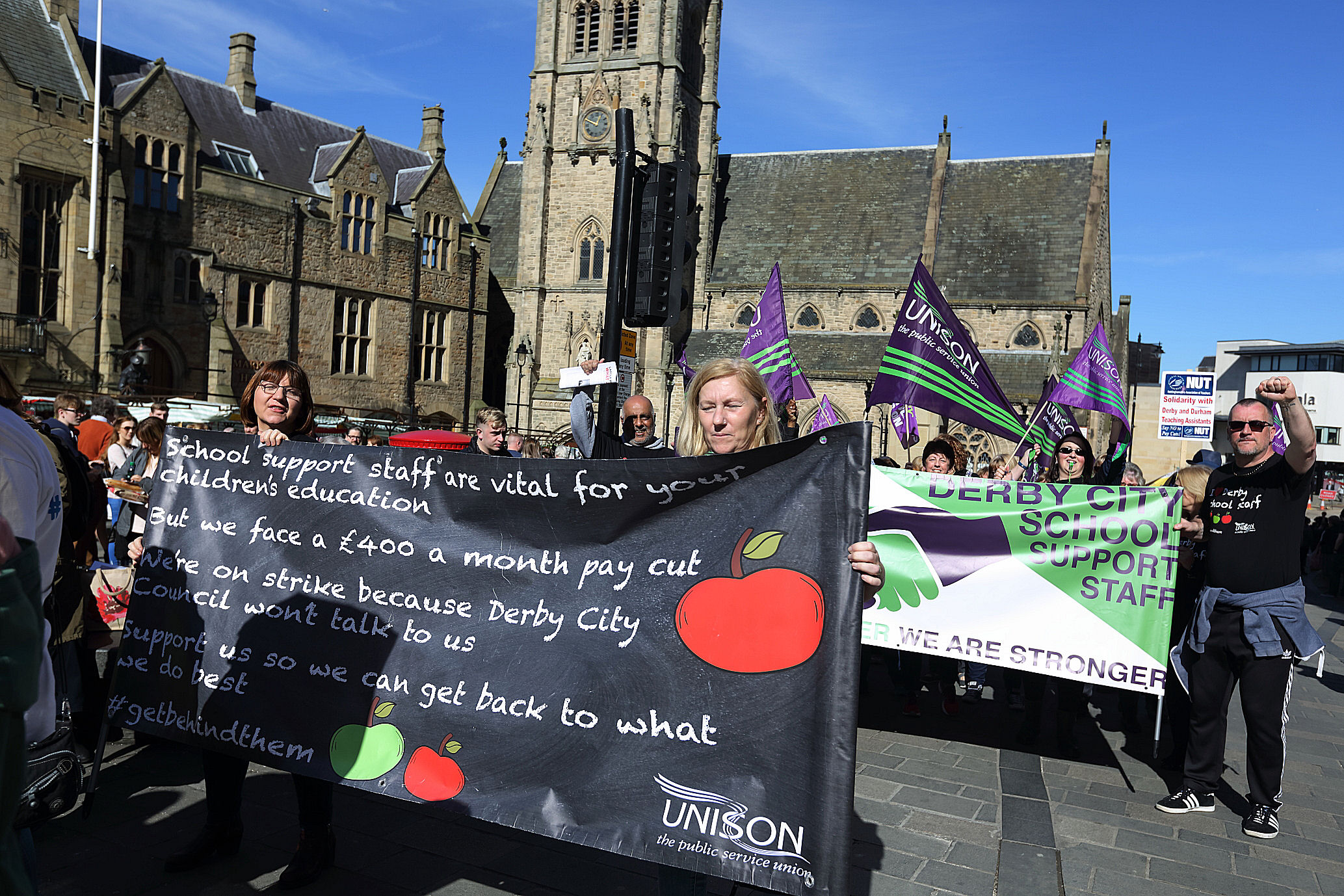 A national demonstration was organised by the Durham TA action committee today bringing together groups from the whole country – including the Derby School Support / UNISON team.