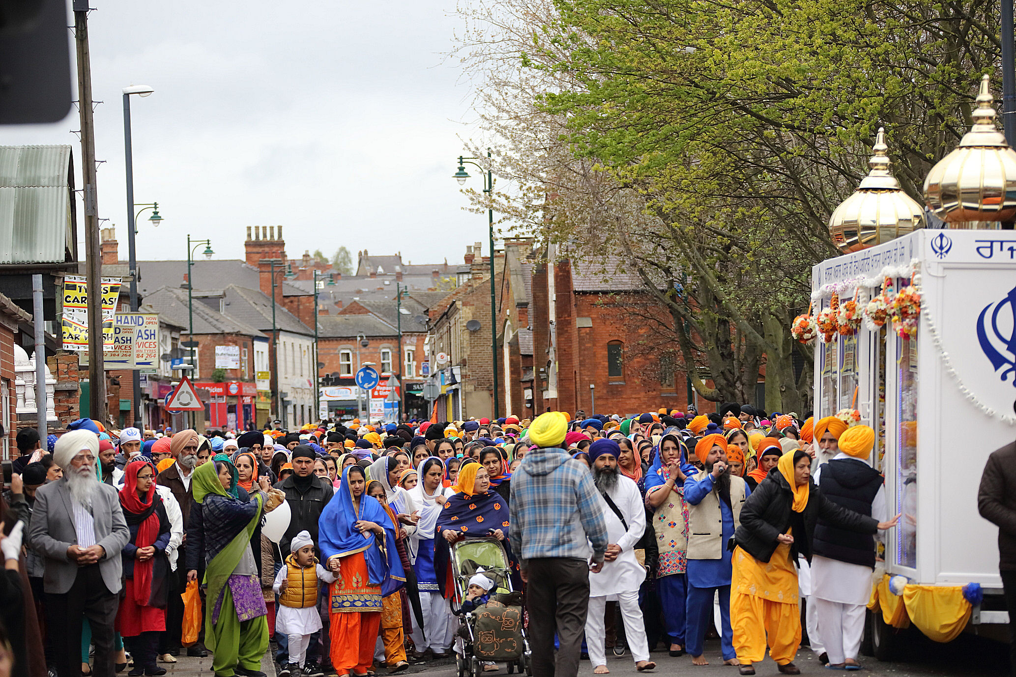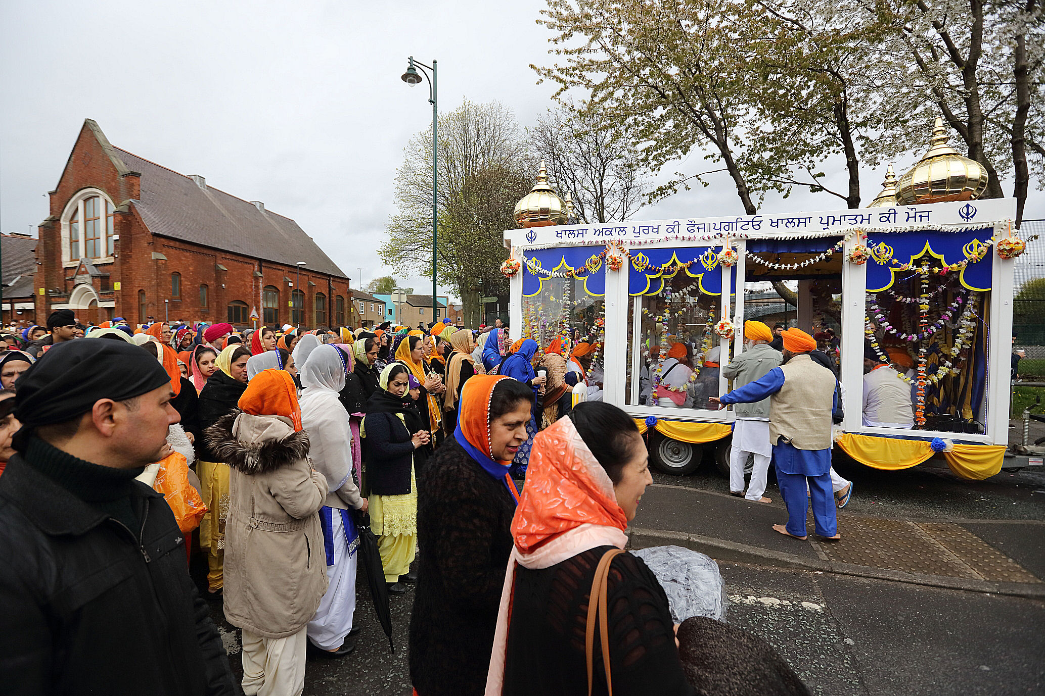 Vaisakhi is one of Derby’s largest annual outdoor events which moves slowly through the streets of Normanton visiting 3 of the City’s Gurdwaras. More information on Sikhism and photos from previous years events, here.