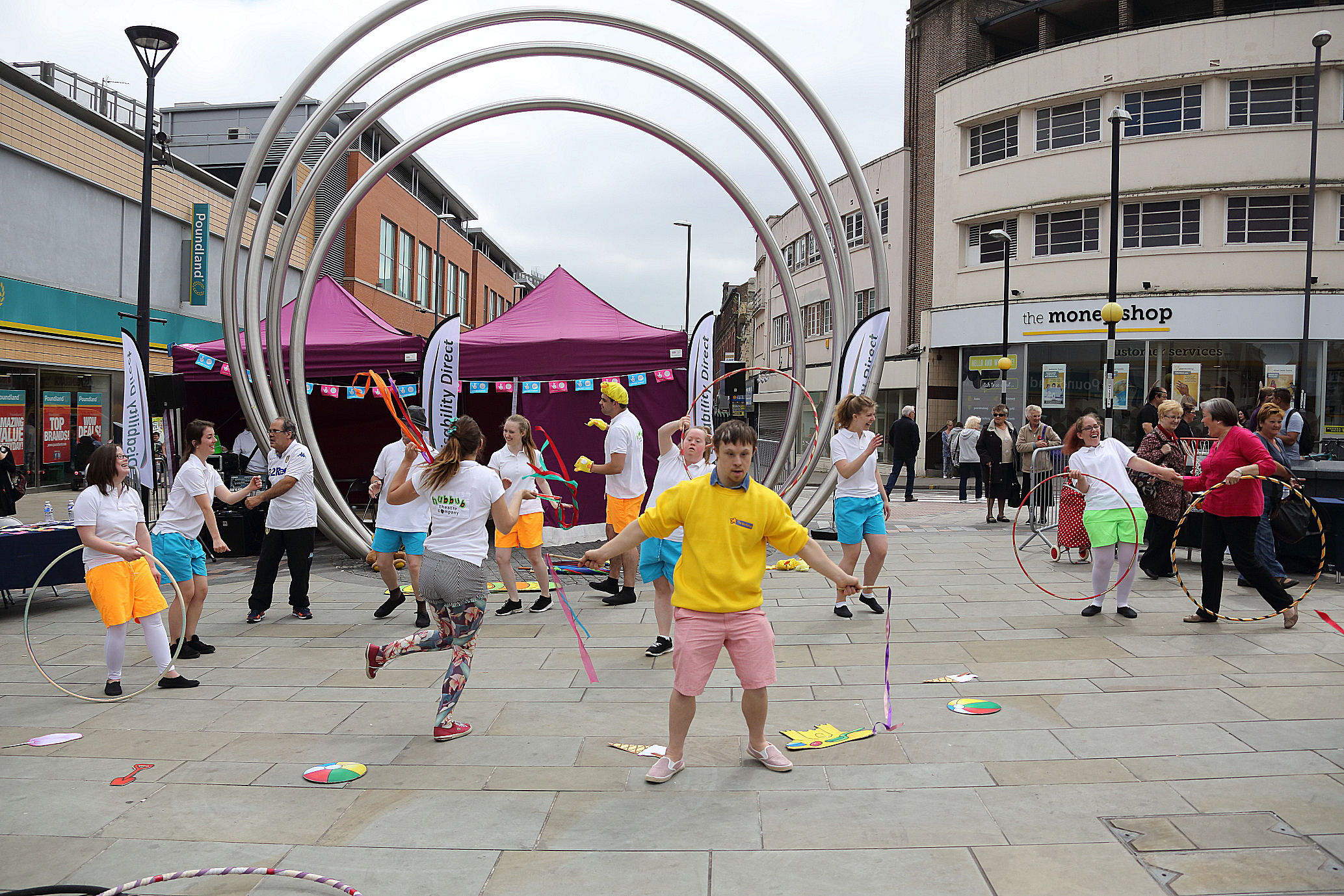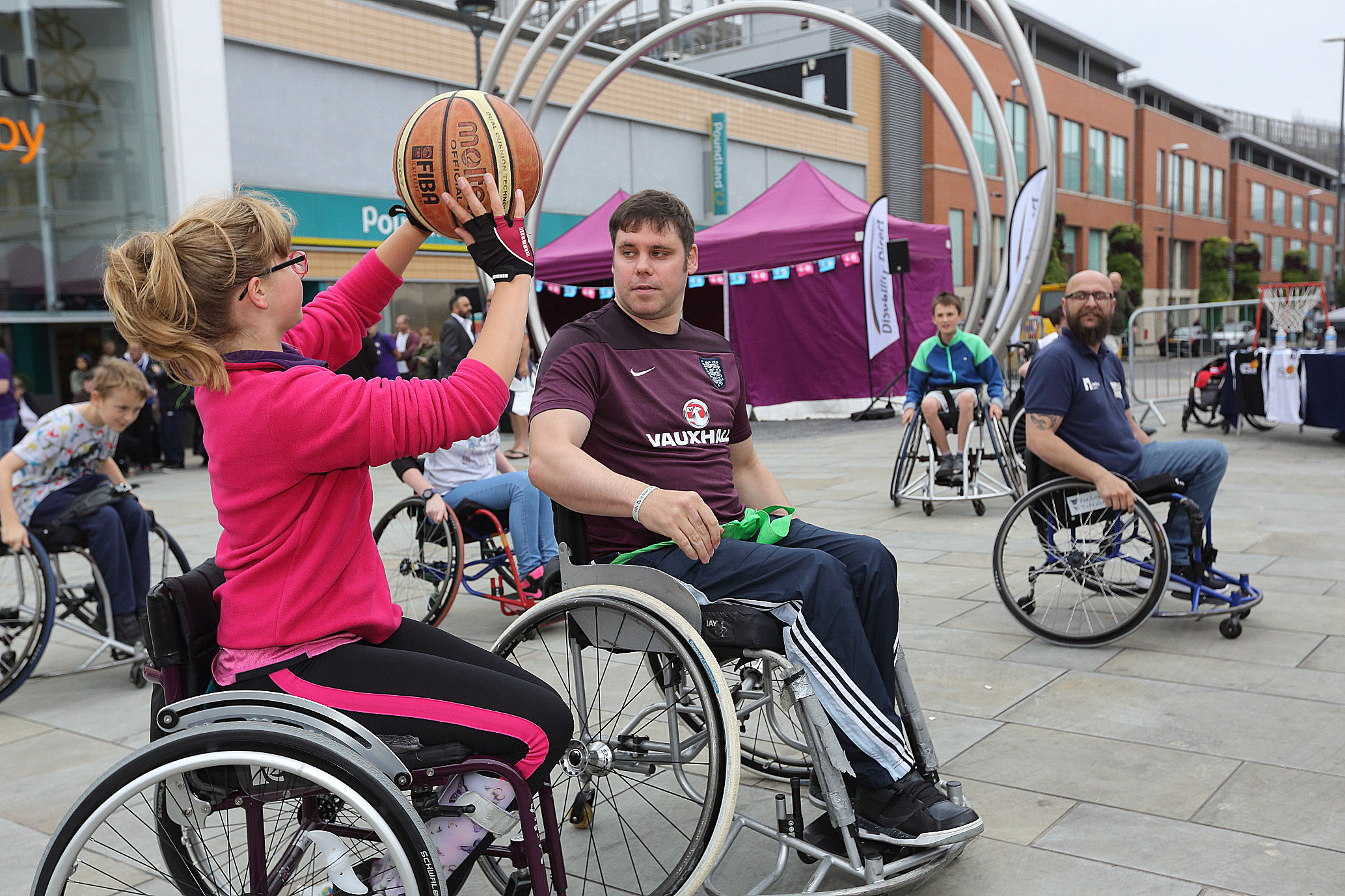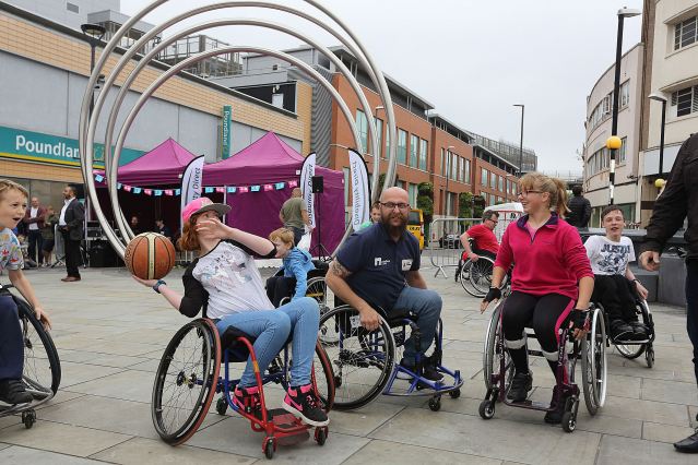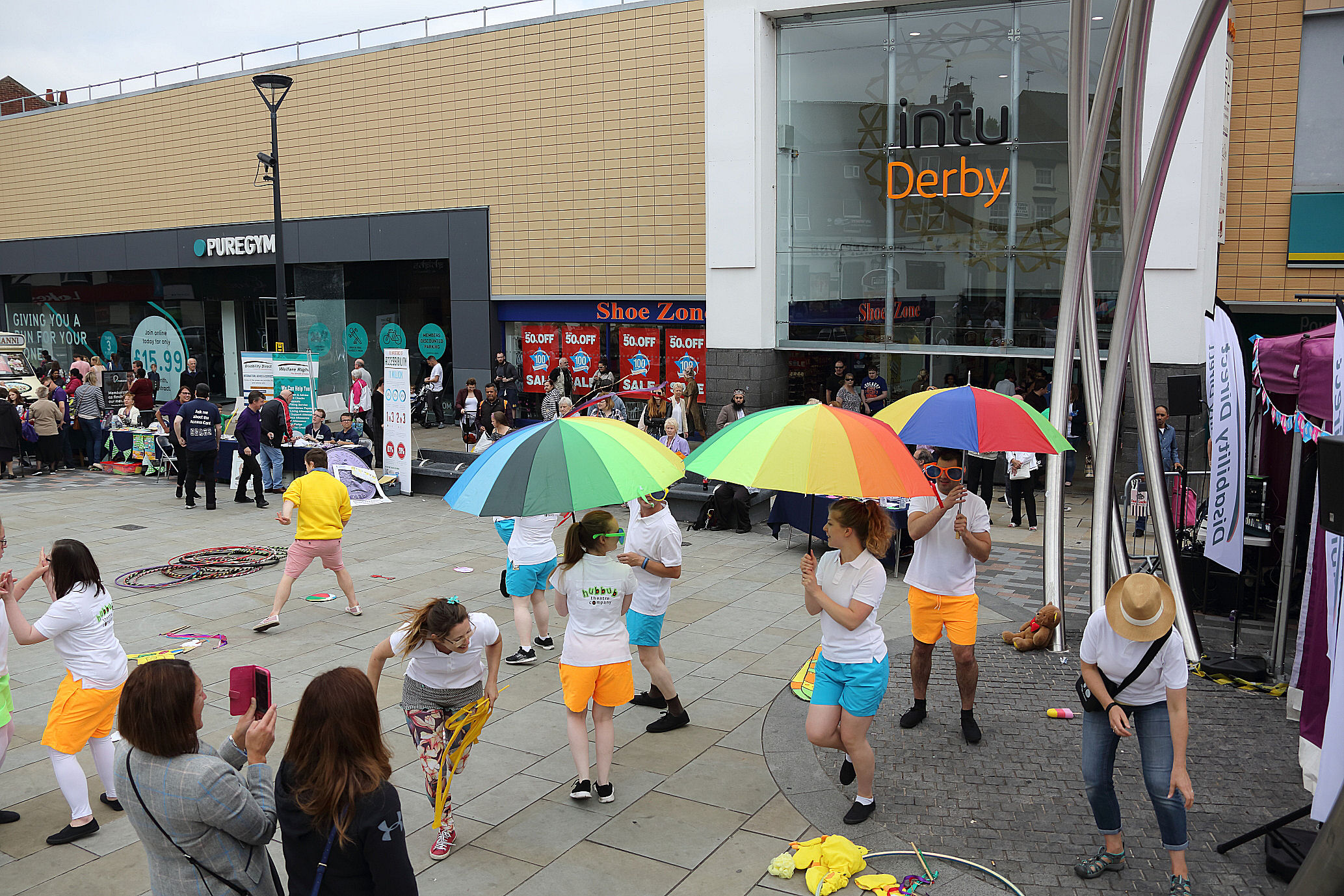 Disability Direct held an event at The Spot in Derby funded by the Big Lottery’s Celebrate programme to bring together disabled, and non-disabled people to enjoy a day of entertainment and activities. Wheelchair basketball, singing, dancing from The Enabled Centre, PossAbilities, and Hubbub Theatre Group