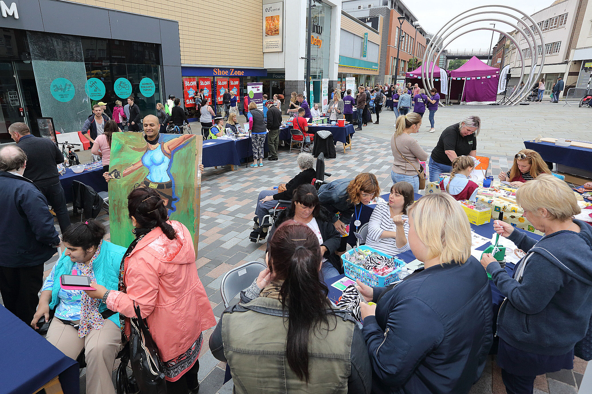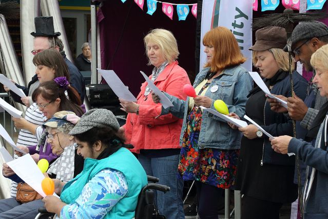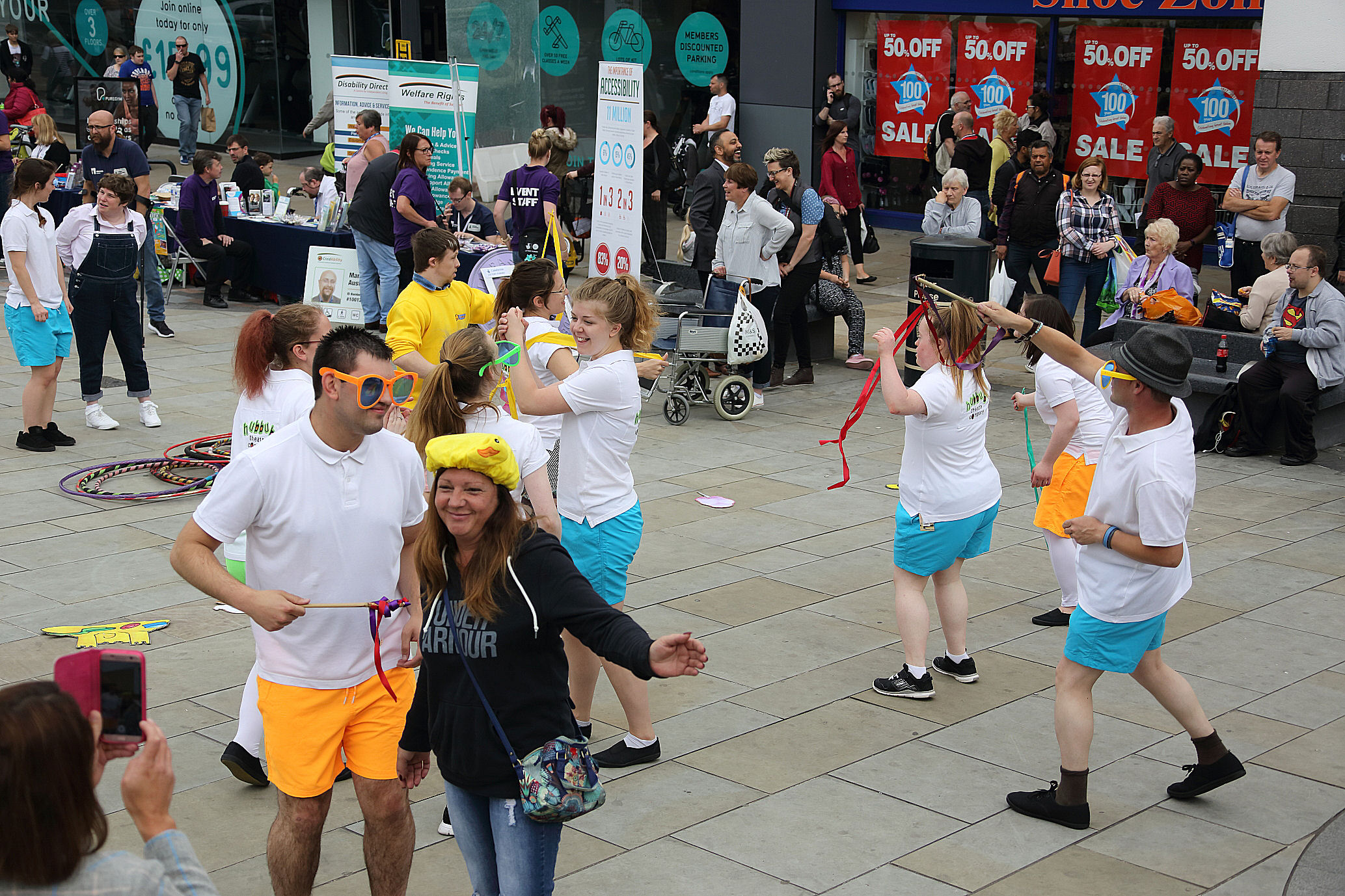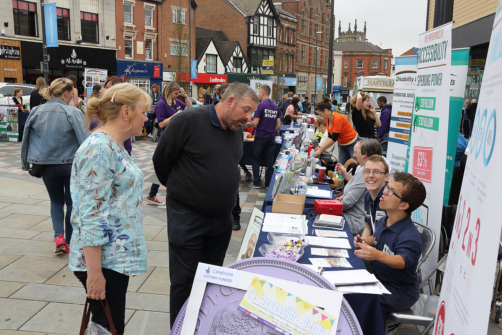 Disability Direct held an event at The Spot in Derby funded by the Big Lottery’s Celebrate programme to bring together disabled, and non-disabled people to enjoy a day of entertainment and activities. Wheelchair basketball, singing, dancing from The Enabled Centre, PossAbilities, and Hubbub Theatre Group