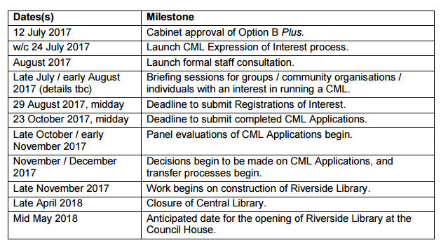 “The premises costs of operating Riverside Library out of the Council House would be absorbed into the existing Council House budget.” (Cabinet report 21/6/17)