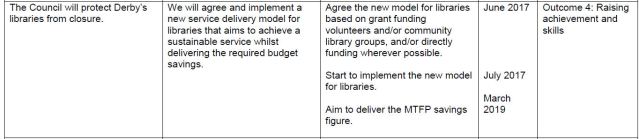In Option B+ this remains unchanged – all of those jobs are preserved. A restructure of the library service must also reduce central staff costs; the case does assume that non-staff overheads will be saved ( above) – this is inconsistent. If there was just a 25% saving, then the next 2 popular libraries after Mickleover, being Spondon and Chellaston could be kept as Council run.