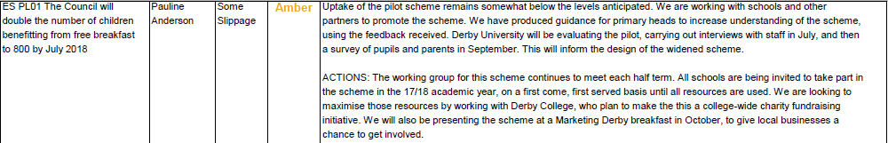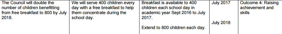 - Commitment to increase the number of children using the Breakfast Club by July 2017 to 400 per day – not achieved ( see below)