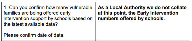 Cllr Bolton has confirmed that she has already achieved Early intervention support for 400 families: