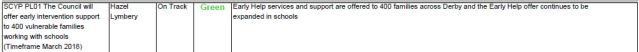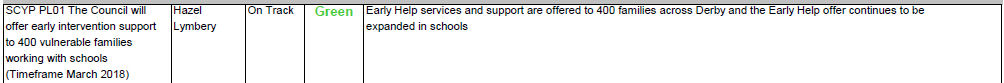 - Special Educational Needs children and the successful delivery of the SEN statement to EHCP programme by 31 March 2018