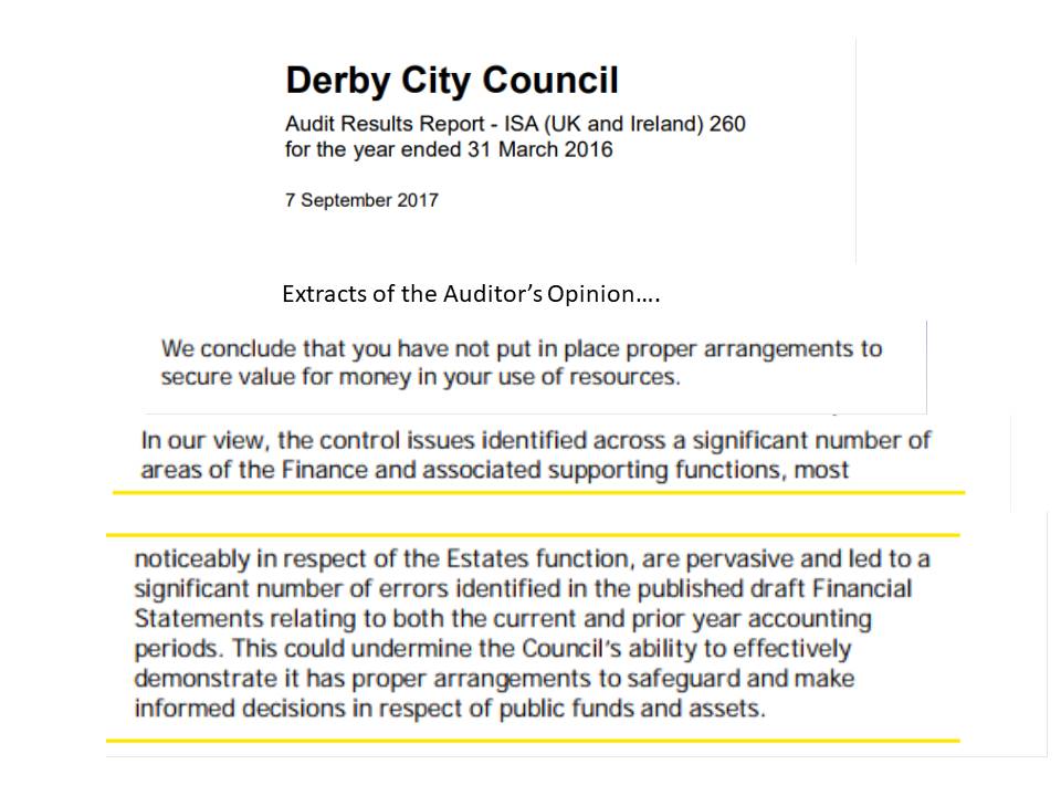 A very damning conclusion to the Auditor’s report on the 2015/16 Statement of Accounts.