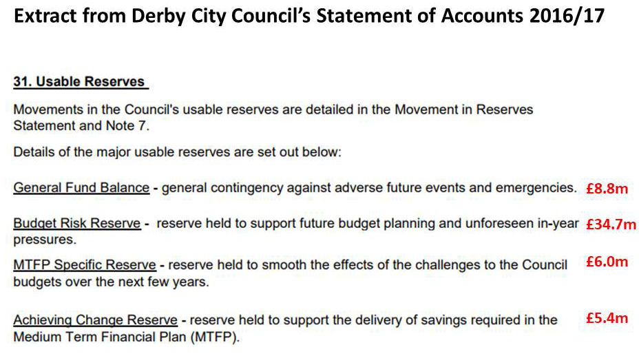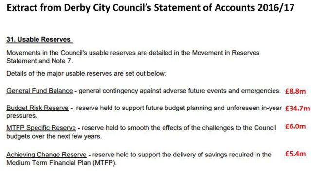 Perhaps Cllr Banwait would like to explain why he is making the people of Derby suffer when he is sitting on £55m of reserves
