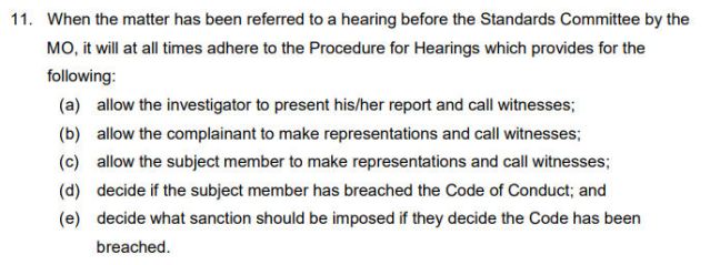 There was no identified “investigator”, no “complainant”, and the “subject member” – Cllr Nawaz was not able to make “representations and call witnesses”. The Committee made a decision based on one piece of evidence – the letter.