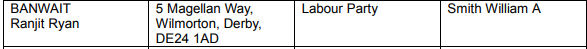 These state that he lives in the Alvaston district of Derby…except he doesn’t – he lives in Wilmorton; this is quite separate from Alvaston. He lives in the Citypoint estate which is the site of the old Wilmorton College – north and east of the A6.