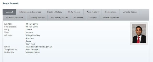 It is a matter of public record where Cllr Banwait lives. A quick check of the Derby City Council website confirms: