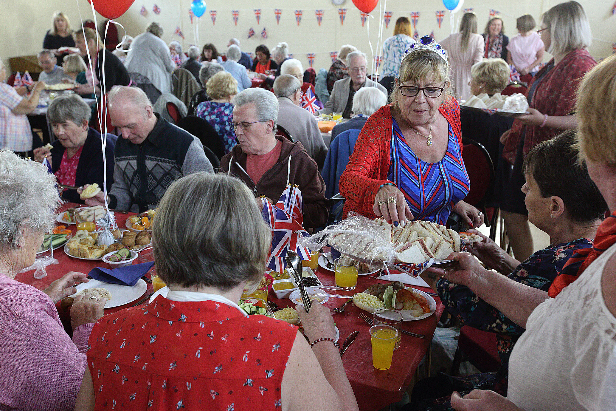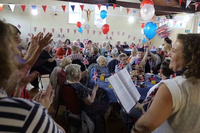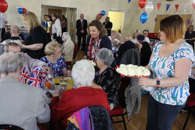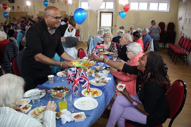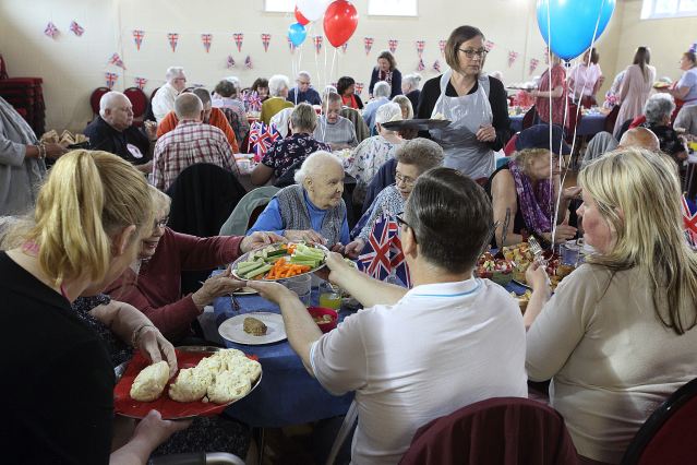 From the smallest sausage roll, to the salads, bread, trifles, cake, bunting, flags, choir, to the minibus, and many people’s time, all were all given freely and from within the community to provide a Royal themed lunch for 60+ elderly residents of the Sinfin Ward. Dozens of people took time out to make individual items for the occasion at St Batholomew’s Church, and many businesses donated food, or provided some modest funding to buy accessories to make the occasion very special for the invitees.