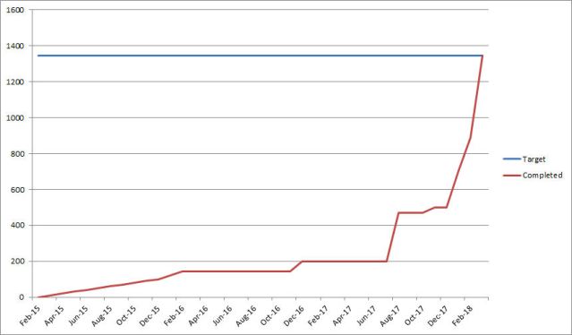In the 8 months from April 2017 – December 2017, just over 200 were completed – around a rate of 25 / month