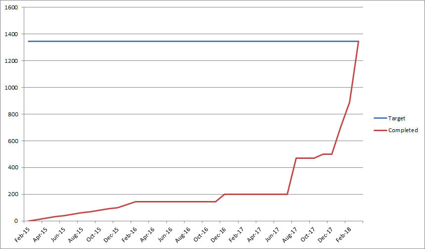 With 3 months left, 737 were still to be completed ( a required rate of 245/month – a 10 fold increase)