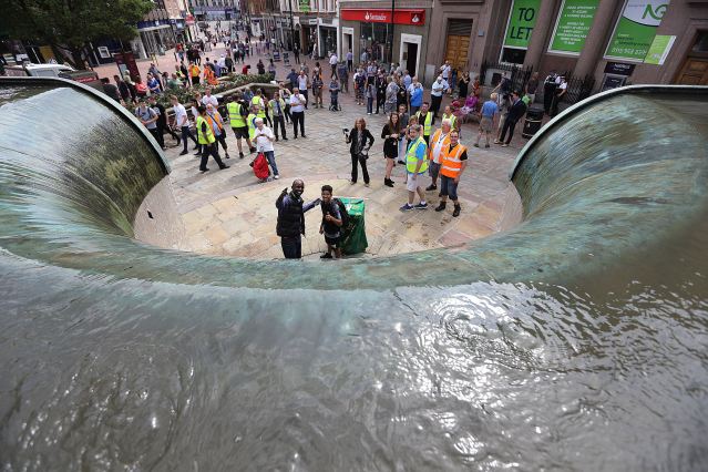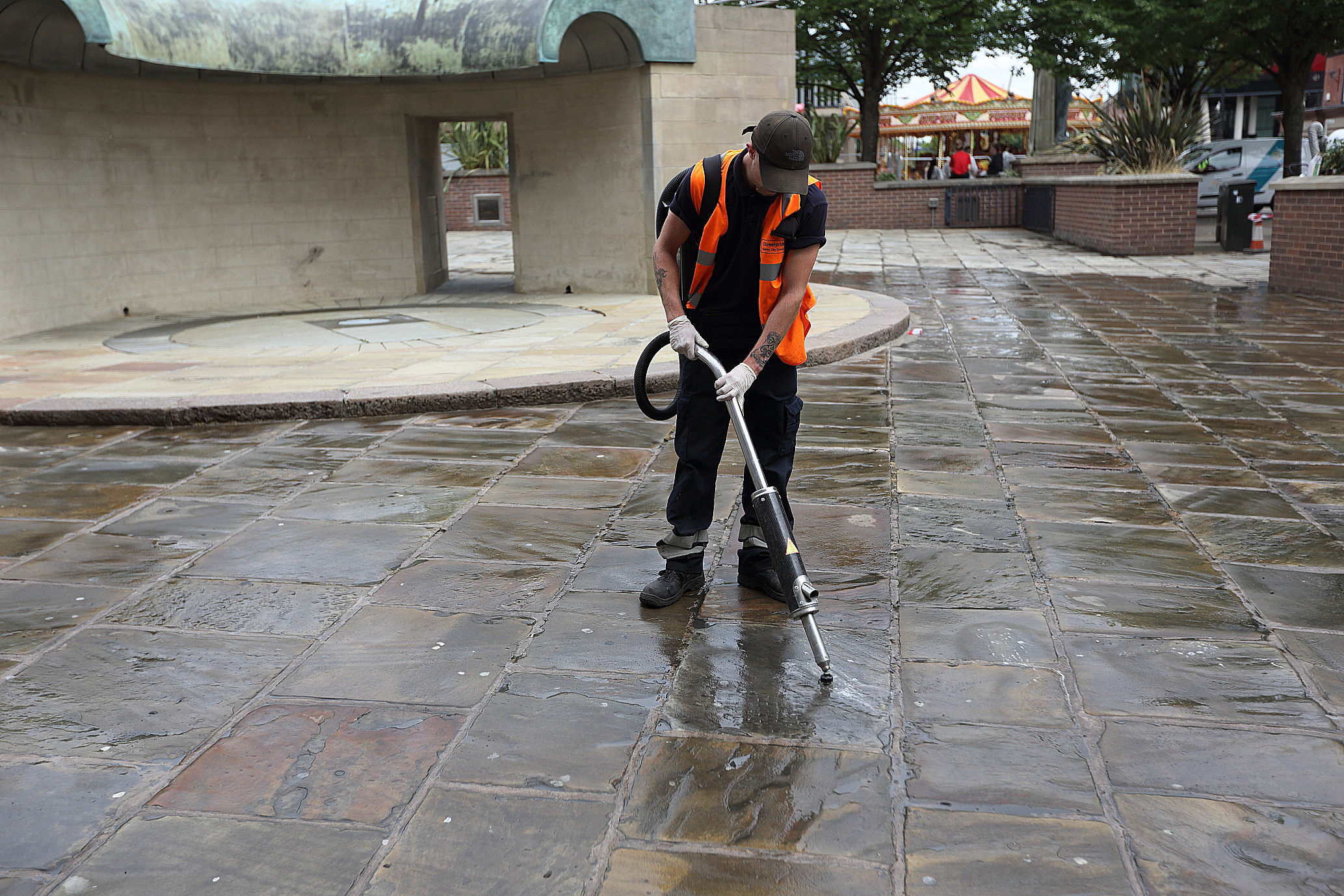 One of the Conservative administration’s manifesto commitments was to do a Deep Clean of the City – today was the first day of that process. Mid-afternoon saw the turn on of the Market Place fountain which was , notoriously switched off, a few years ago due to budget constraints.