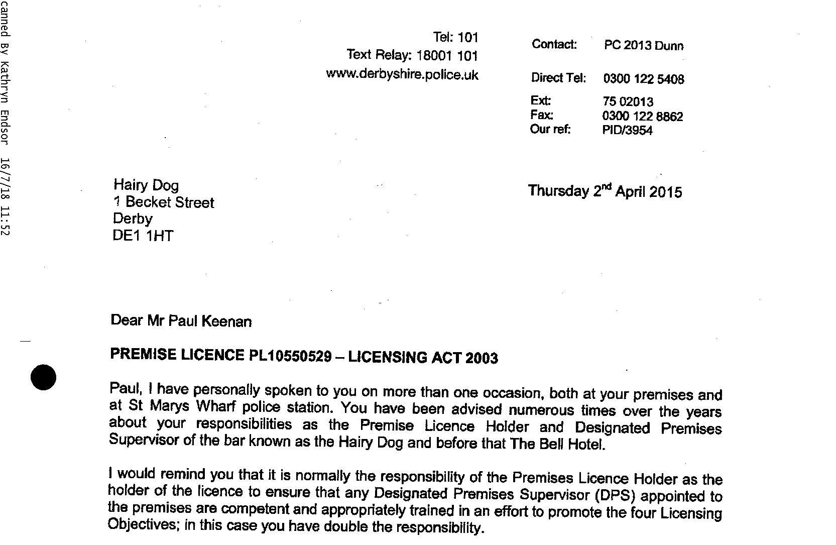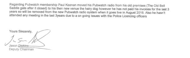 The Police’s concerns over Mr Keenan were presented. Their frustration is evident in this letter from April 2015.
