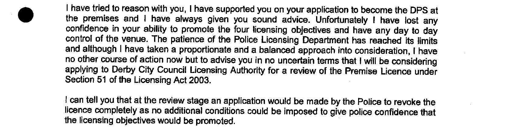 “….that revocation of the licence was appropriate and proportionate, given the alleged disregard for legal authorities demonstrated by the DPS. Moreover, it was argued that replacement of the DPS would not have the desired effect of enforcing the licensing objectives as they believed Mr Keenan would likely remain involved with the business”