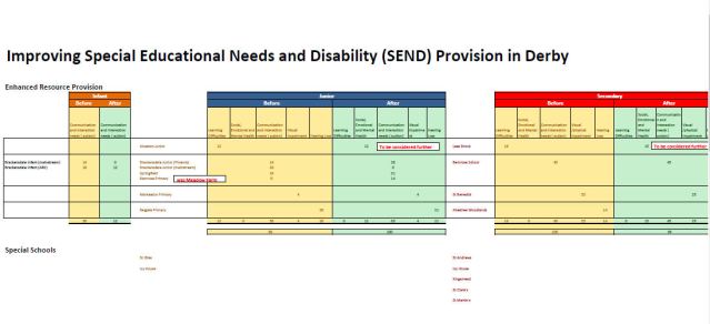 In November 2017 the Council issued a consultation document on the strategy for Special Education Needs (SEN) children. Whilst the plan maintained annual funding, which is substantial at £55m pa, there were significant changes proposed to the placements in mainstream schools, and the Enhanced Resource Centres. The school that was most affected was Brackensdale Primary School ; this was covered by Derby News, at the time.