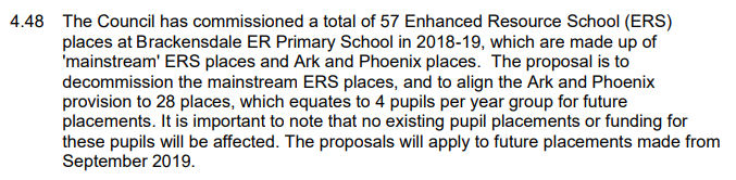 In summary, Brackensdale Primary has been successful in offering SEN support in a mainstream setting for 37 children ; this will be removed and re-allocated elsewhere in the City. The more focussed Enhanced Resource Provision will be reduced from 30 to 28.