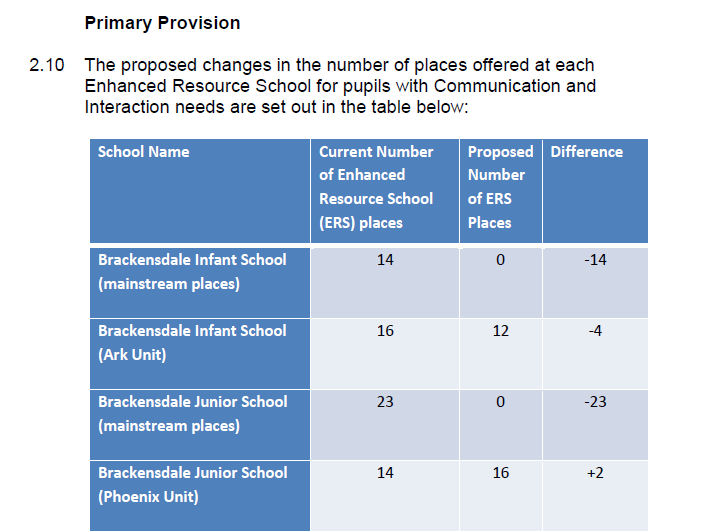 In a public meeting last November many parents from Brackensdale expressed great concerns about the strategy. It seems that the overall proposal makes most sense to the Council Officers involved and provides an elegant mathematical solution, rather than one that responds to those who have daily experience of children with SEN.