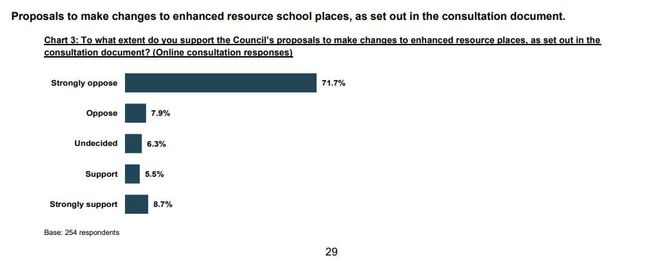 Parents might be more accepting of new options if they thought that there were realistic and practical routes, within the Council, for them to get satisfactory resolution of their specific concerns. Unfortunately, as the overwhelming, majority of respondents seem to have been ignored then it is to be expected that their scepticism will continue unabated. and they will be asking themselves – “What was the point?”