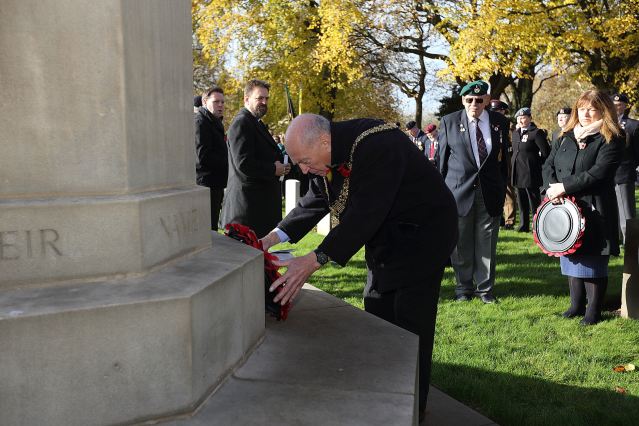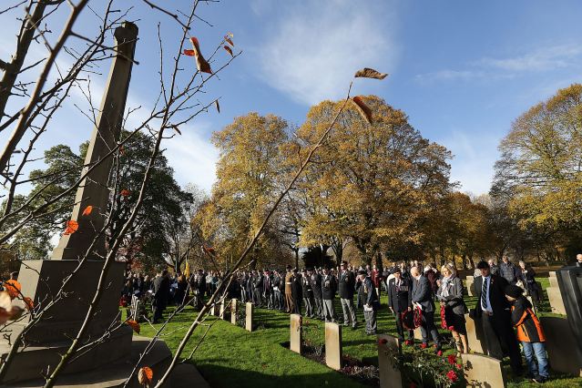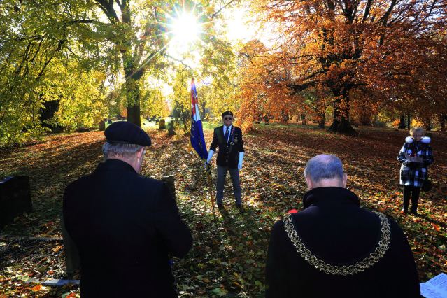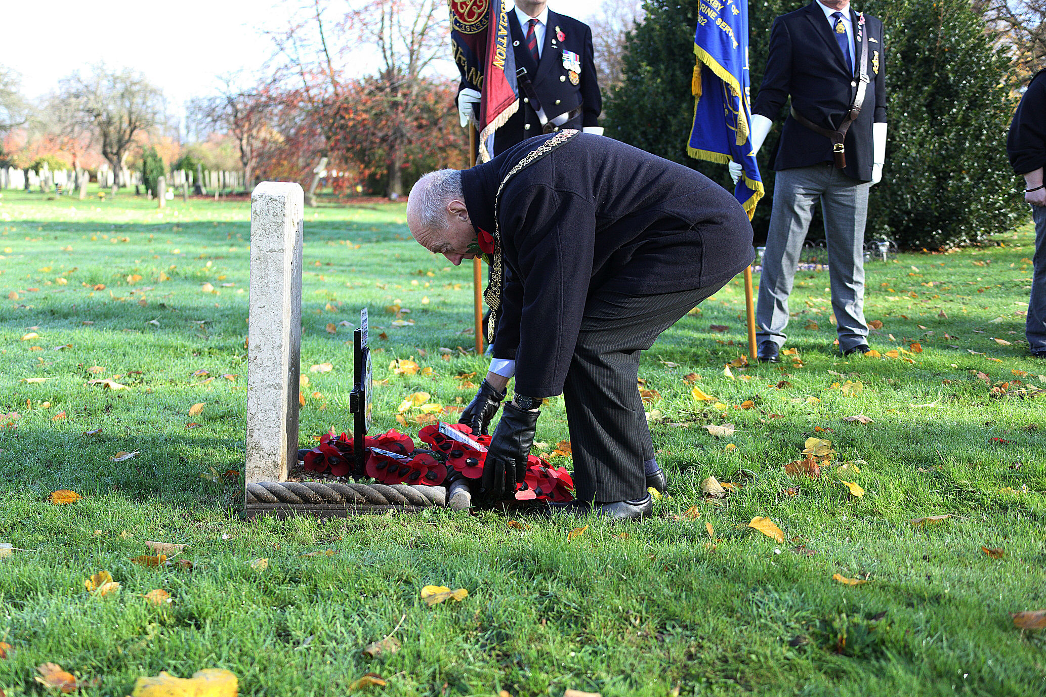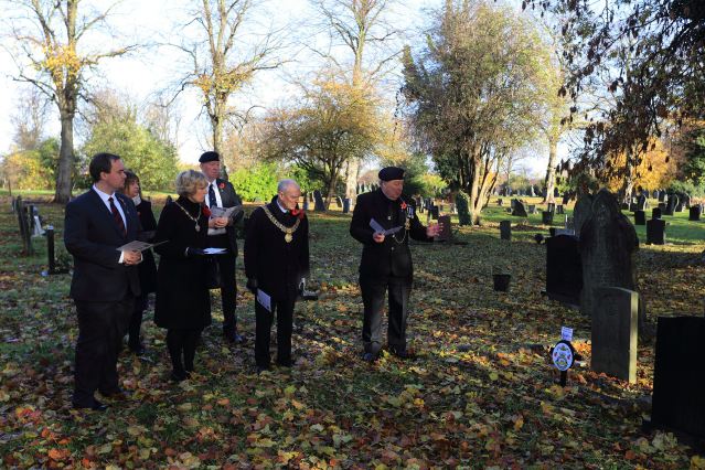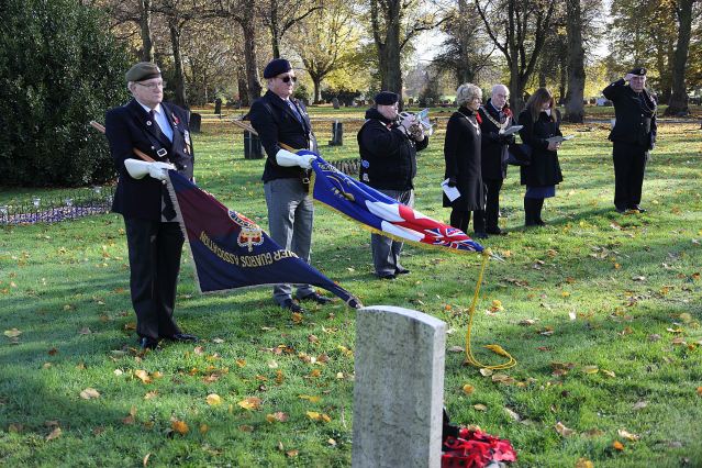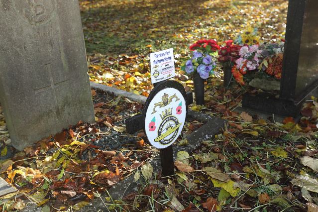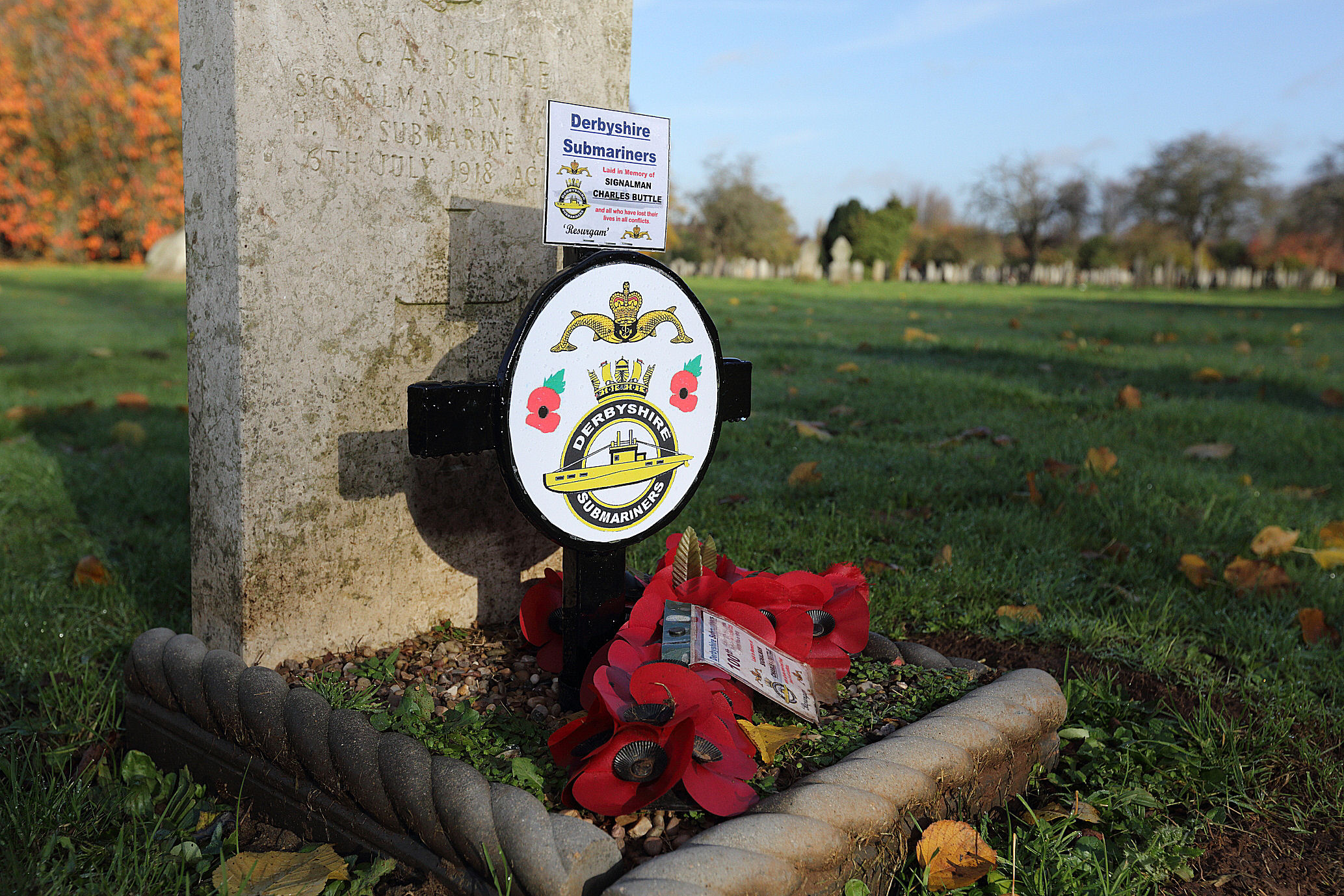 The Derbyshire Submariners led the services at the Cemetery, today, with their homage to ERA John Brooks (D/269639) and Signalman Charles A Buttle (D/J9244). Both men lost their lives in action during the First World War. Brief services were held by their gravestones with the Mayor of Derby in attendance.