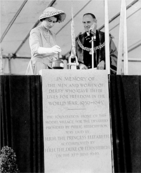 Conceived by the Rotary Club, and built on land donated by Derby Borough Council, it was a “memorial” developed specifically for ex-Service personnel who had been disabled in active service. The first foundation stone was laid by Princess Elizabeth in 1949 when she said: