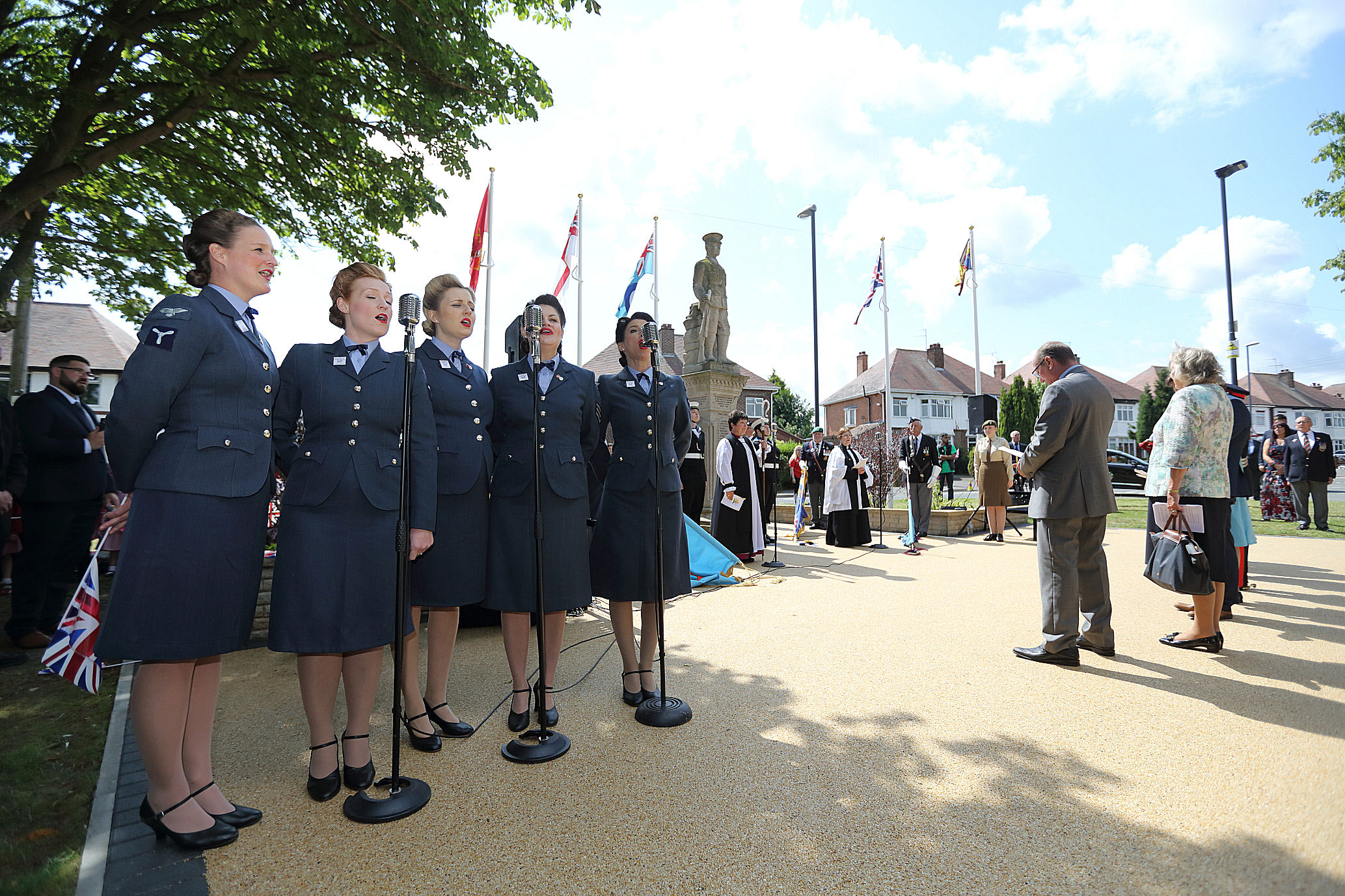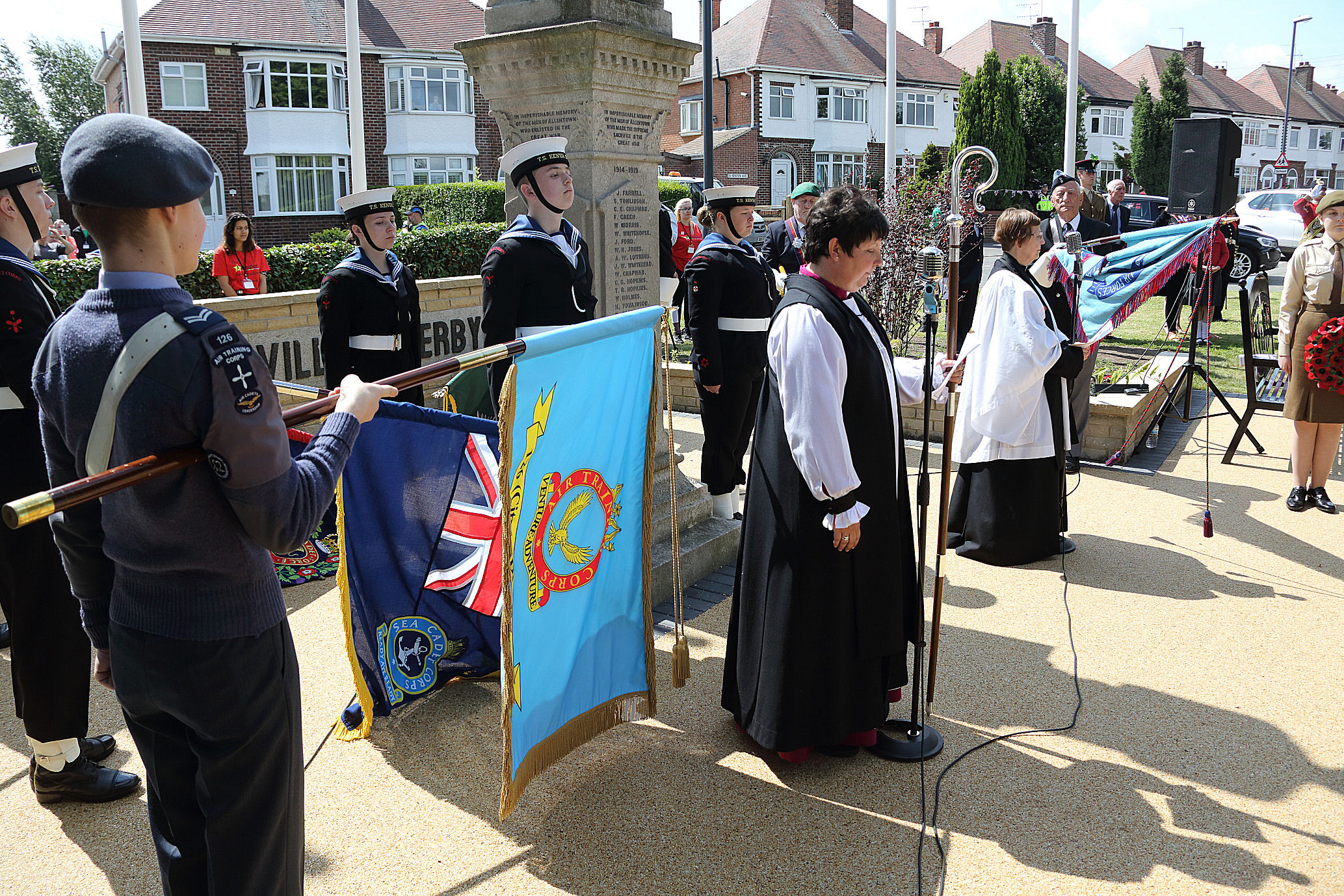 The crowning addition to this Square, which was revealed by Princess Anne, was the new polished granite obelisk monument remembering those that fell in service, standing opposite the weathered stone statue of the lone soldier.