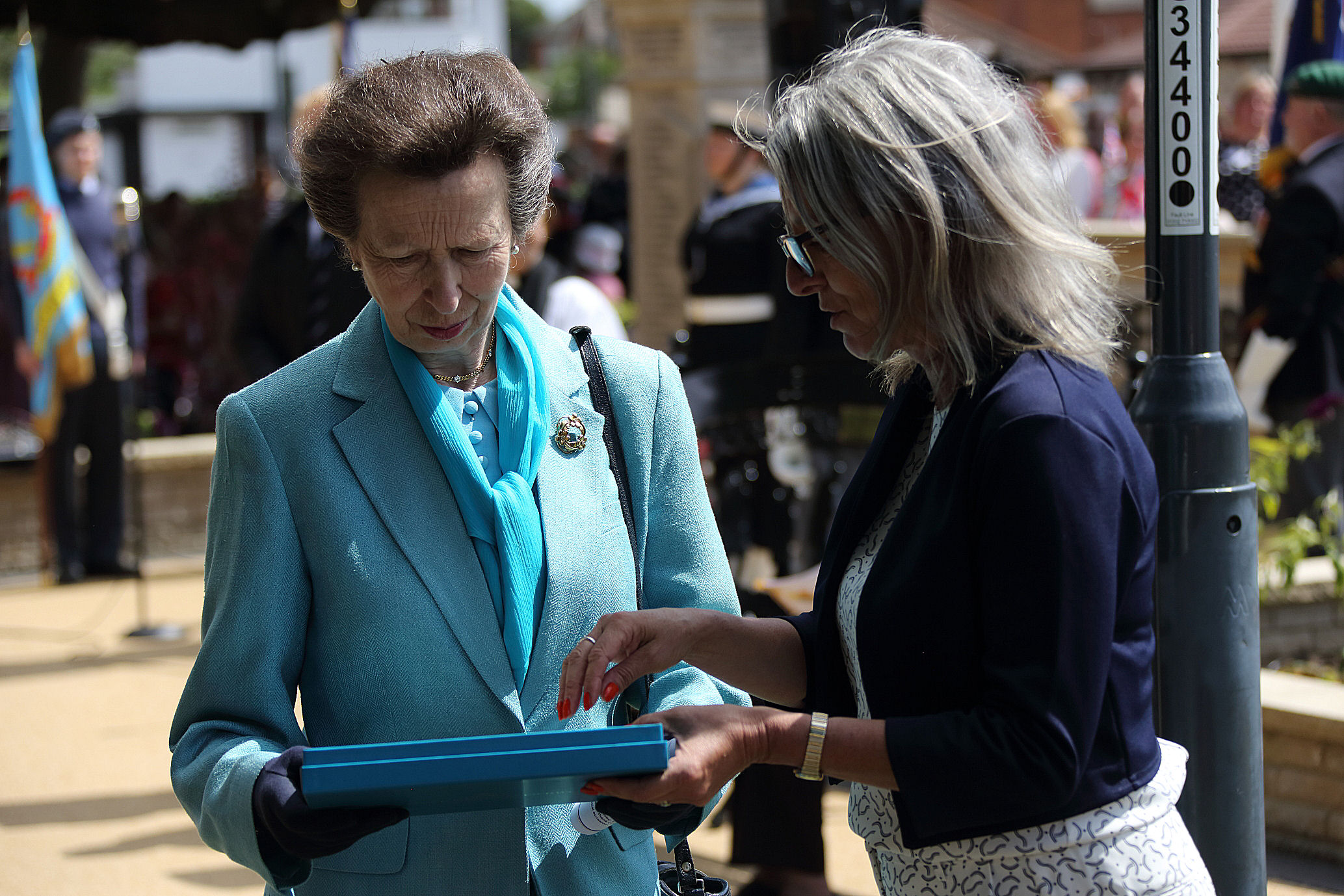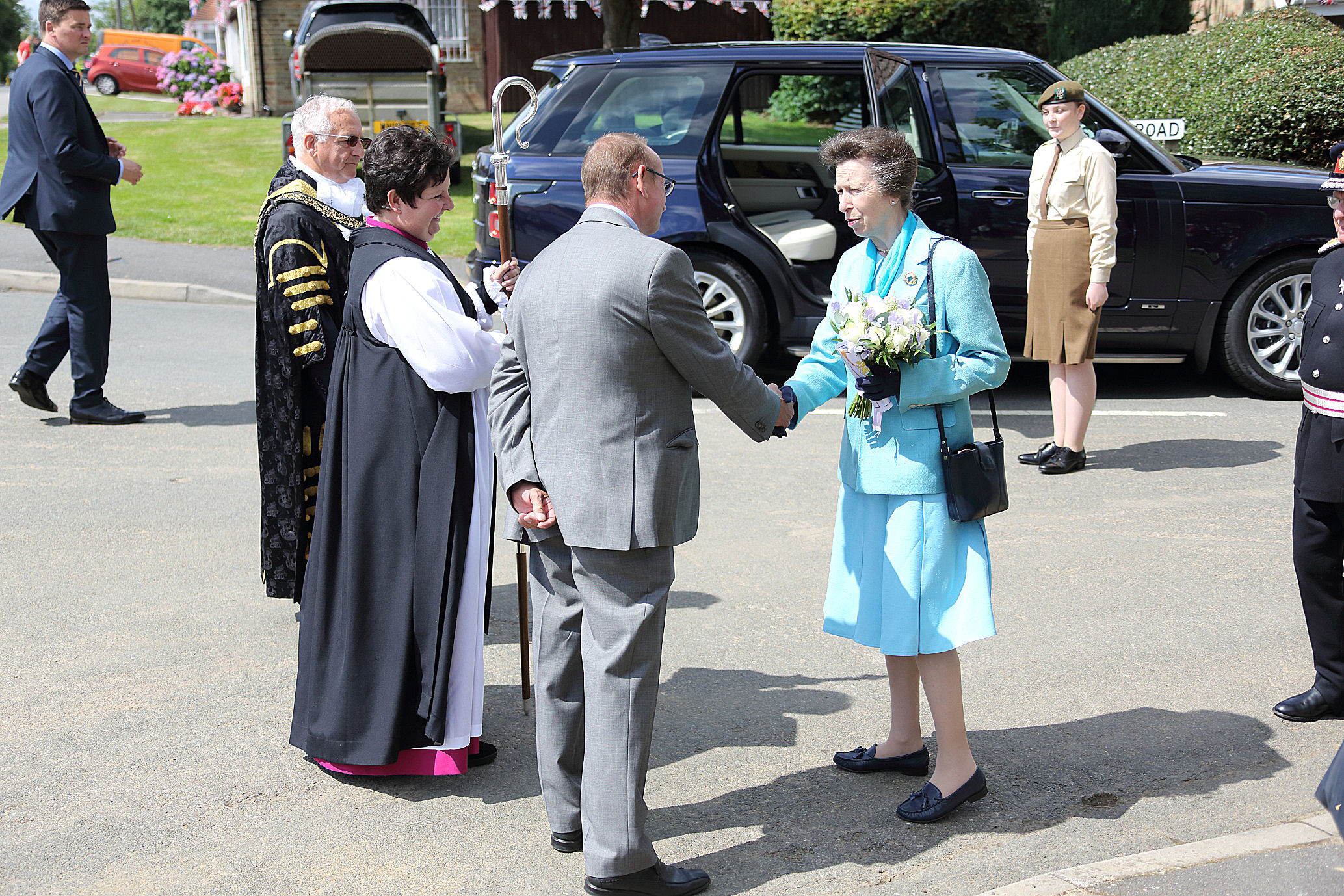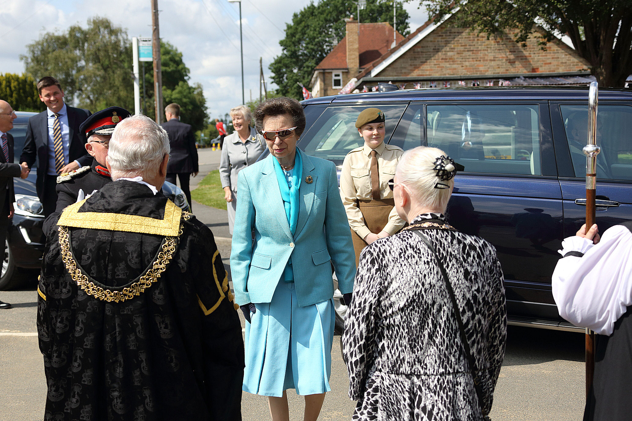 70 years later, her daughter, The Princess Royal, Princess Anne visited the village to take part in the Anniversary celebrations.