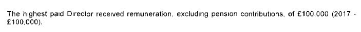 In 2018, the highest paid director received £100,000