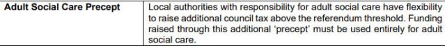 The Local Government Association Provisional Local Government Finance Settlement 2021/22 – ‘On the Day’ Briefing 17 December 2020 confirms the definition of the ASC precept as: