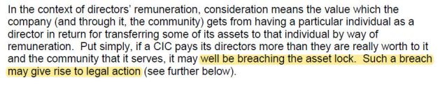 On the face of it the excessive salaries and the trading with H20, seems to breach the Asset Lock requirement of Community Interest Company regulations.