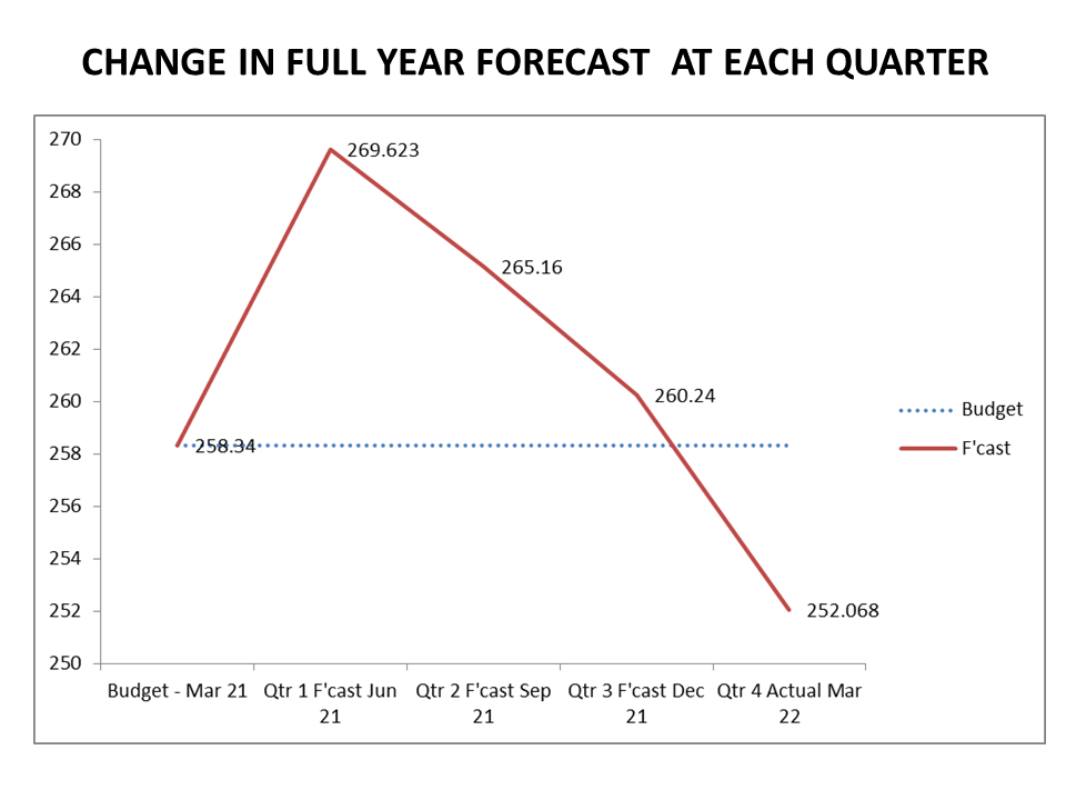 The 2021/22 Council Tax rise of 4.99% was based on the above budget requirement of £258.34m. A budget requirement closer to the actual outturn of £252m (2.38% lower) would have resulted in no Council Tax increase for 2021/22.