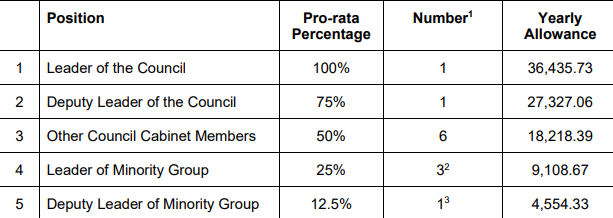 All 51 Councillors get a basic allowance of £12415 for being in Office.