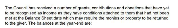 The long term financing has remained relatively constant over the 5 years however the source has changed significantly. The use of finance leases and borrowing has dropped by £46m to £397m. The counter to this is the £42m increase in the advanced receipt of Capital Grants, to £70.5m – which is money held on trust – as opposed to contracted liabilities where repayment is defined. Note 14 to the annual financial statement states: