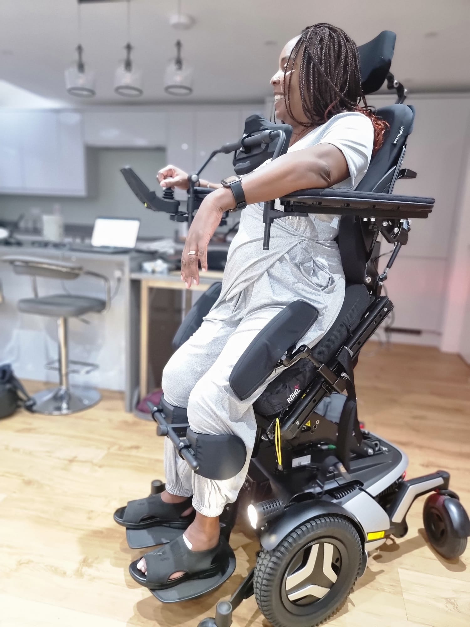 Sharon needs the Stand Up wheelchair – her medical team advise it, but it costs £30,000 and it is not available on the NHS.