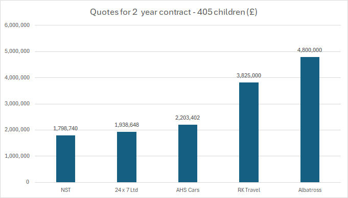 3 of the suppliers quoted significantly above NST for the 2 year contract, with 24 x 7 Ltd being just 7.7% higher (+ £0.14m). This would leave just 2 suppliers in the competition provided that there were no serious quality issues.