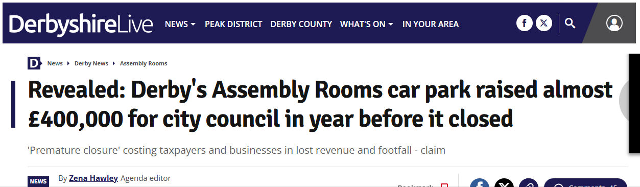 Contrary to the erroenous reporting in the Derby Telegraph (Derbyshire Live) the car park did not generate an “income” of £400k in the last 12 months. The report failed to recognise, as did Cllr Hassall, the Tory Leader, that there are substantial costs associated with generating that revenue; the most significant being £157k in electricity charges.