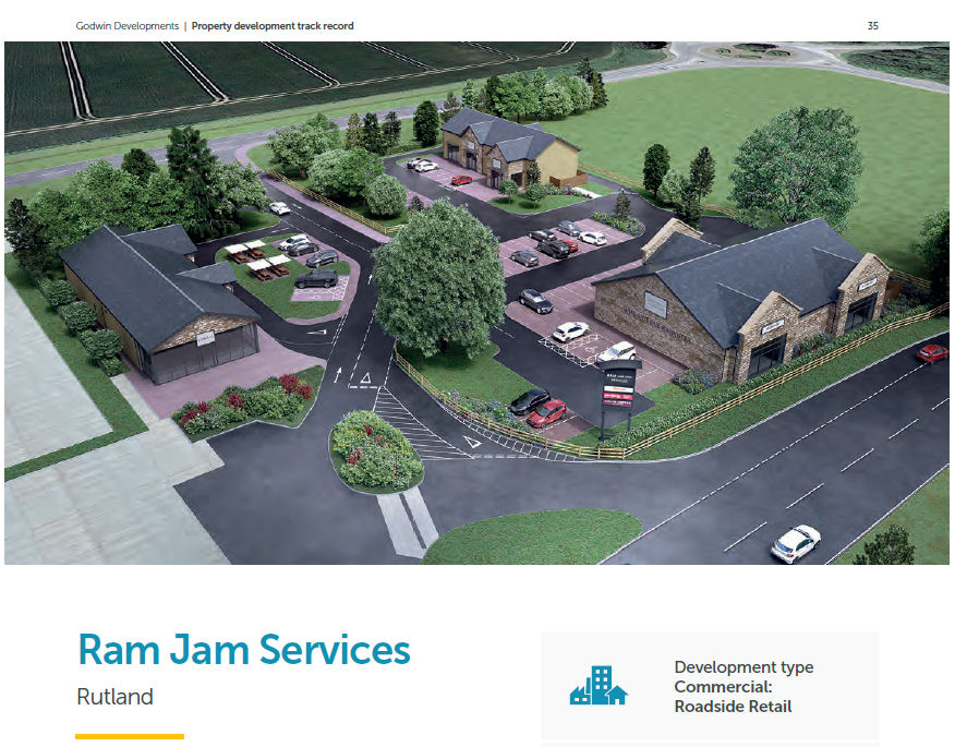- The Rushden Service station development was a 2 year project and was sold in May 2020. Godwin took the project just through the planning phase ( it is noteworthy that Eurogarages was the applicant, not Godwin) and then sold it to LondonMetric Property, for just over £2m. The site was built by Eurogarages – not Godwin!